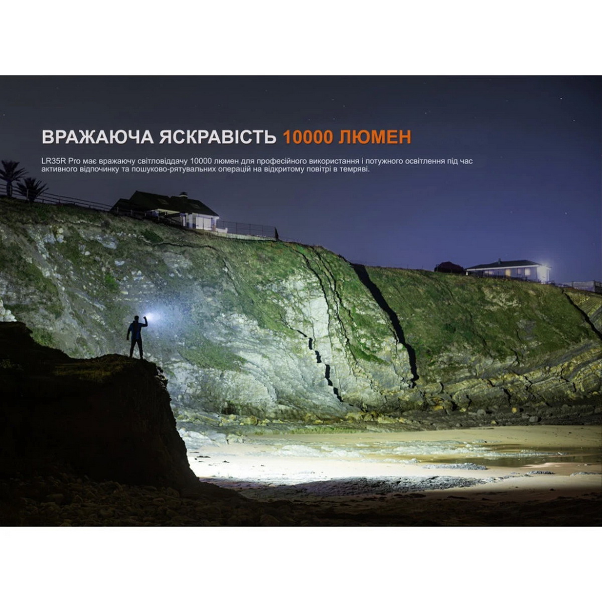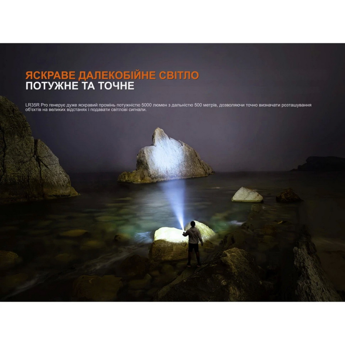 Fenix LR35R PRO — це високопродуктивний ручний пошуковий ліхтар, створений для роботи в умовах обмеженої видимості.
