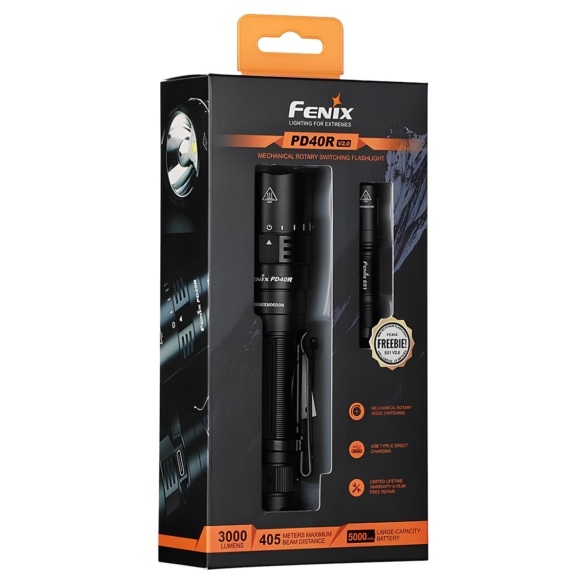 - PD40R V2.0 (3000 Lm) Type-C Rechargeable + Fenix E01 V2.0 (100 Lm)