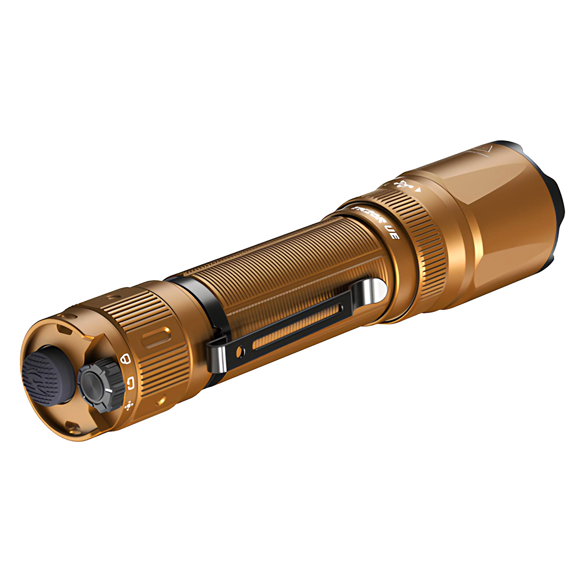 Fenix TK20R UE Tan (2800 Лм) – потужний і водночас компактний тактичний ліхтар в приємному золотаво-пісочному кольорі. Дана модель пропонує дві групи режимів, забезпечує високу яскравість до 2800 люменів та дозволяє ефективно освітлювати територію майже на півкілометра (до 465 метрів). Вдалий вибір для тактичних операцій, рятувальних і пошукових місій, патрулювання, роботи на контрольно-пропускних пунктах, активного туризму, а також стане у нагоді для екстреного освітлення та самозахисту.