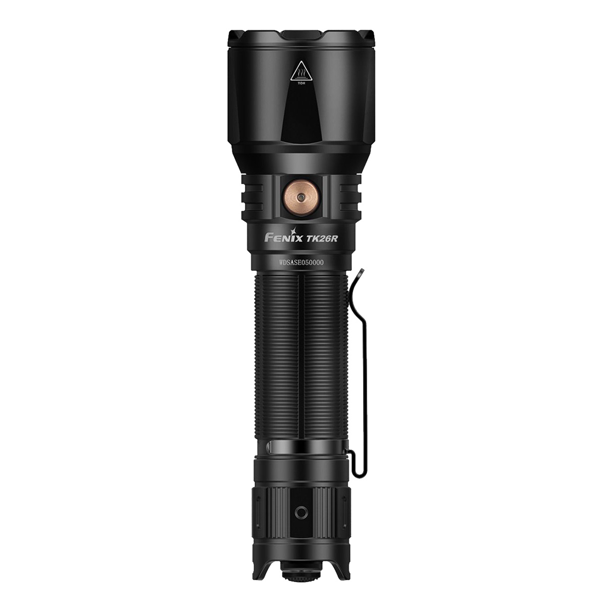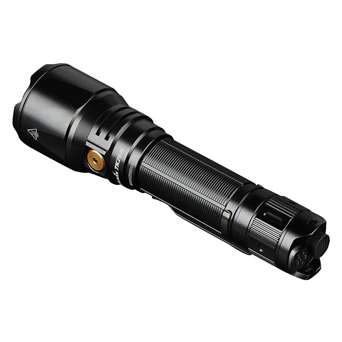 Ліхтар Fenix TK26R (1500 Лм) позиціонується як тактична модель, яка відзначається сильною яскравістю в 1500 люмен та забезпечує освітлення на відстань до 350 метрів. Ліхтар оснащений трьома кольорами світіння, що робить його ідеальним для тактичних завдань, пошукових операцій, полювання та туристичної діяльності.