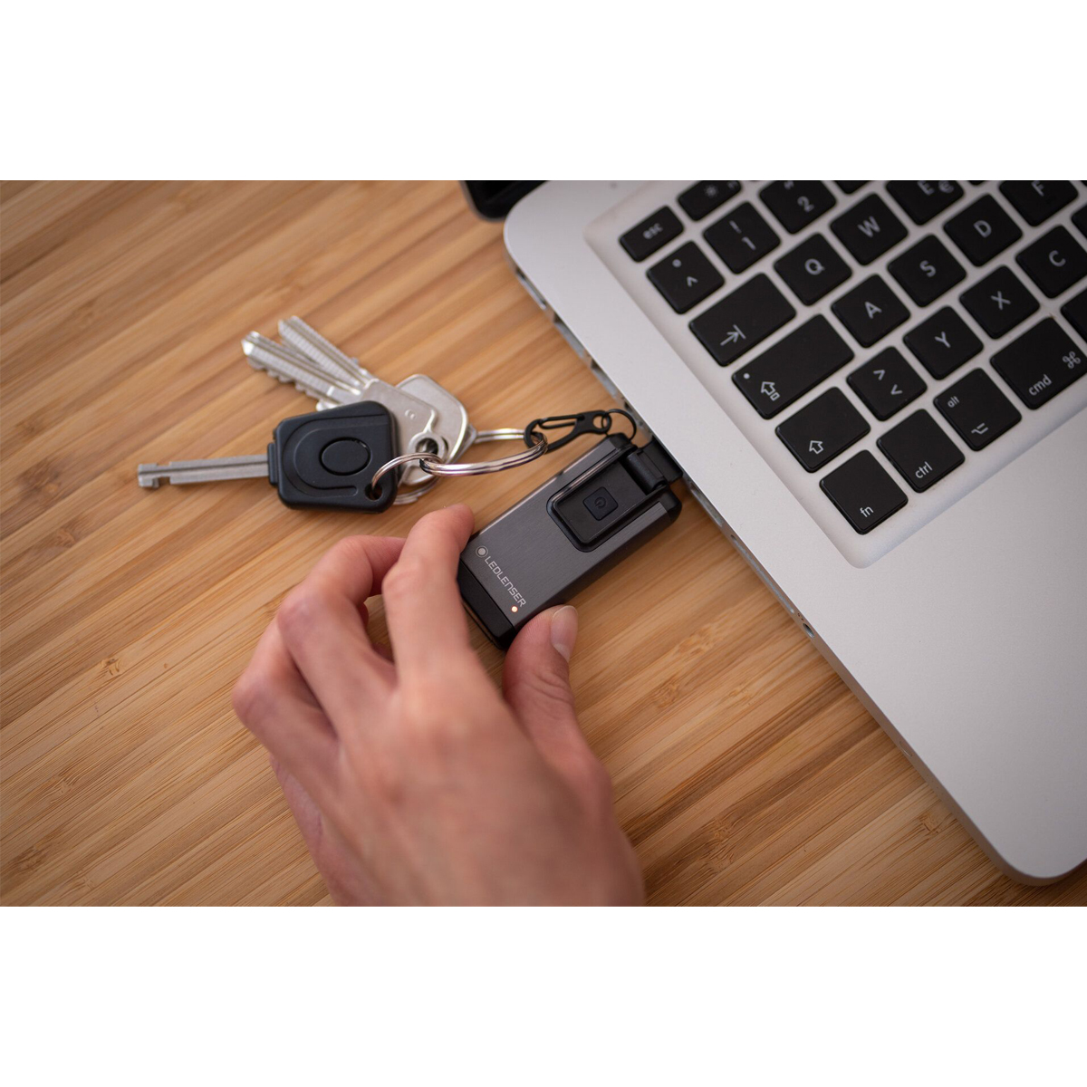 Модель відповідає стандарту захисту IP20 та гарантує стійкість до бризок води, а також витримує падіння з висоти до 1 метра. Особливістю конструкції є розкладний інтерфейс USB-A, який дозволяє заряджати ліхтар без кабелів — напряму від ноутбука, павербанка або адаптера. При вазі всього 30 г та наявності зручного карабіна ліхтар легко кріпиться до ключів, рюкзака чи спорядження.