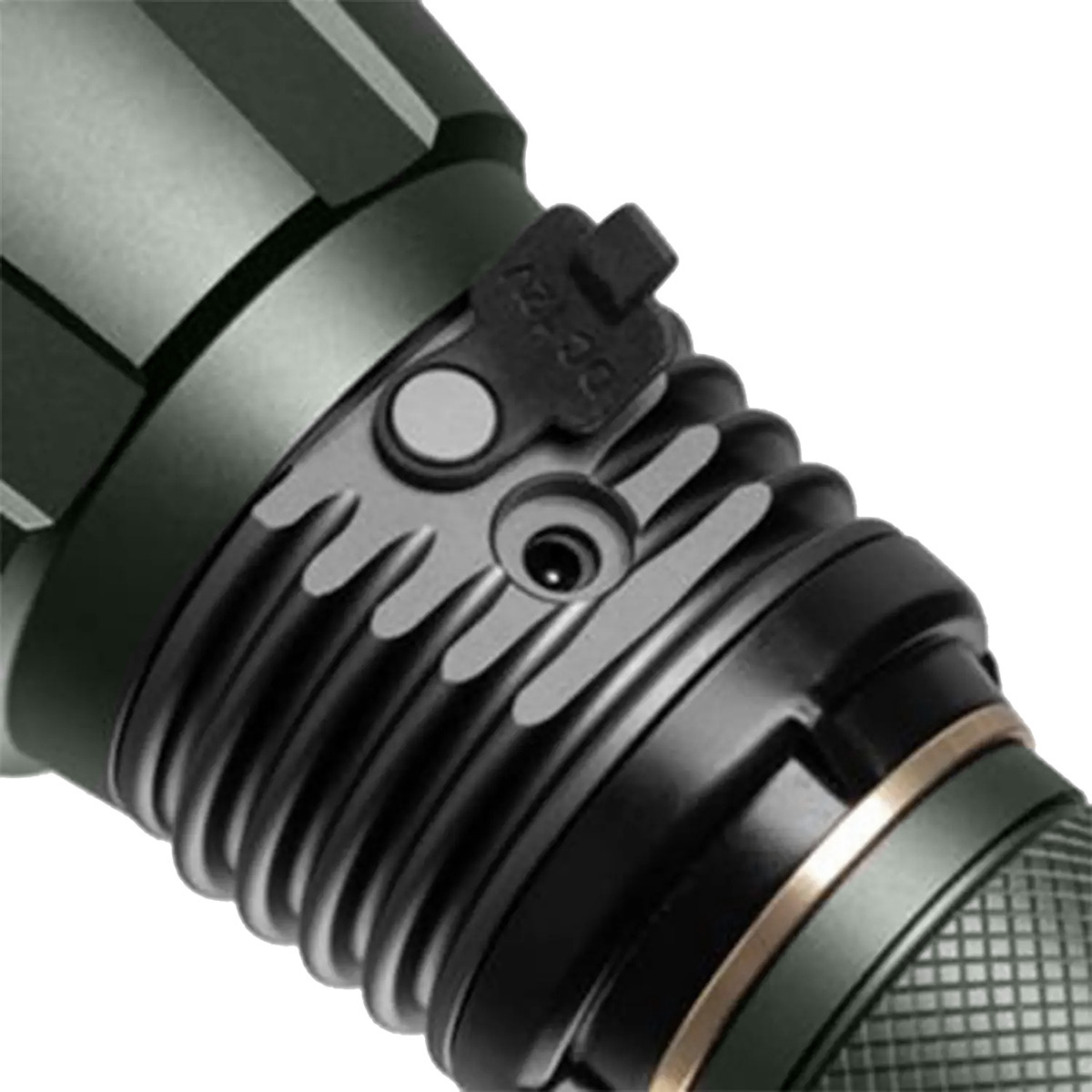 Суперпотужний світлодіод Cree XHP 70.2 HD, з ресурсом понад 50 000 годин, генерує світловий потік до 3000 люмен. А спеціальна форма рефлектора створює рівномірний промінь без гарячих точок із максимальною дальністю 375 метрів. Ліхтар має 5 режимів роботи: Turbo, High, Medium, Low та Strobo (для подачі сигналів або засліплення супротивника). Кнопка керування знаходиться збоку на корпусі та має додаткову кришку для захисту від випадкового натиснення.