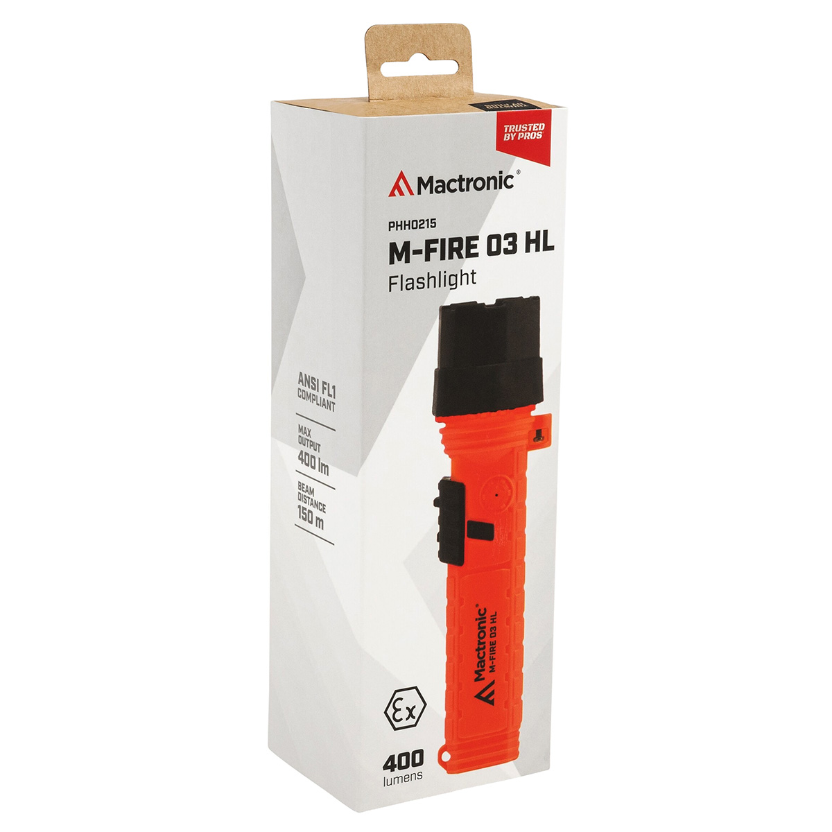 Пожежний ліхтар Mactronic M-Fire 03 HL (400 Лм) призначений для використання в зонах з небезпекою вибуху газів, накопиченням випарів та пилу. Прилад сертифікований за стандартом Ex-ATEX (клас вибухонебезпечної зони 0, де присутні гази класу IIC). Стане у нагоді працівникам МНС, пожежних служб та швидкої допомоги.