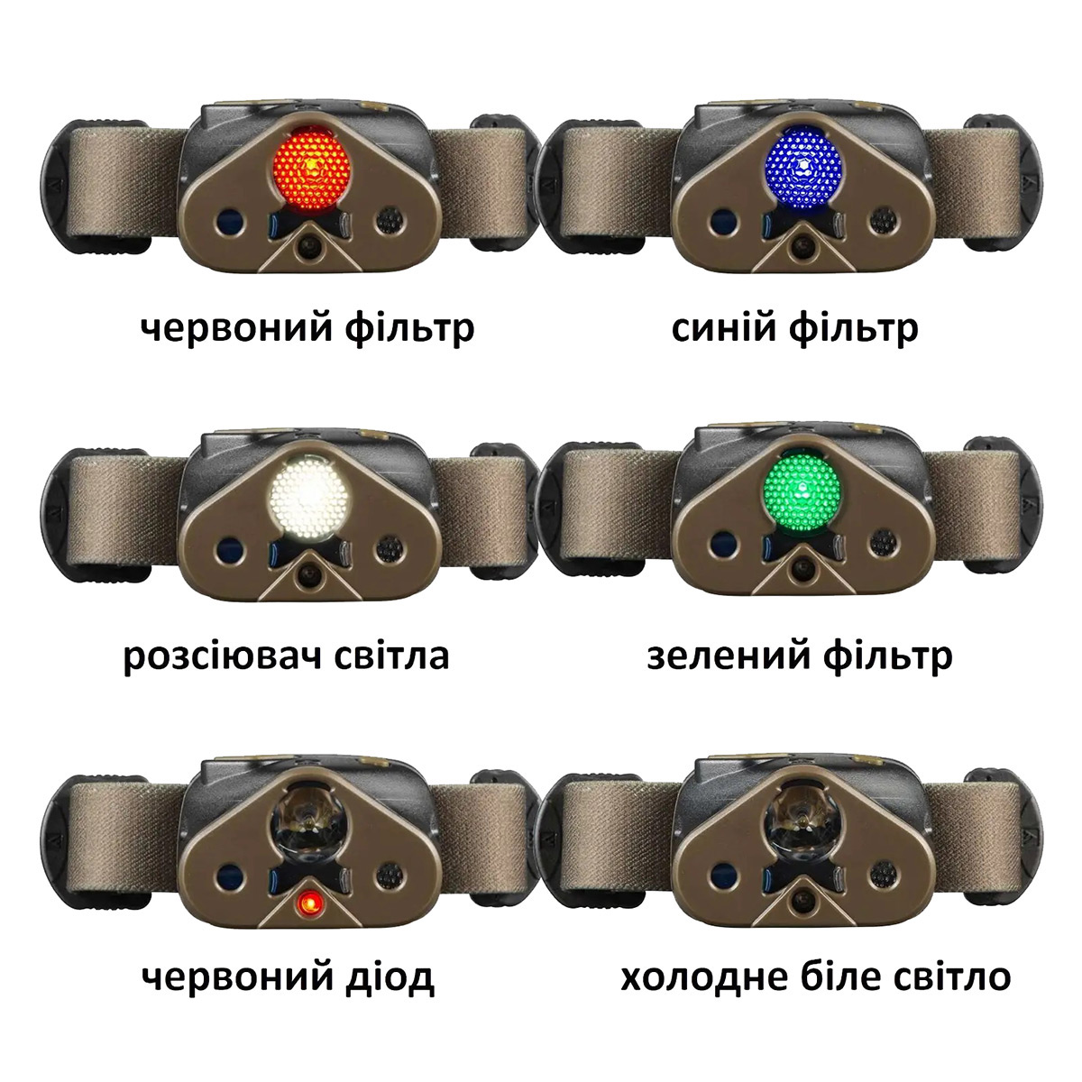 - Можливість встановлення в гніздо для ПНБ на касці або на стропі MOLLE