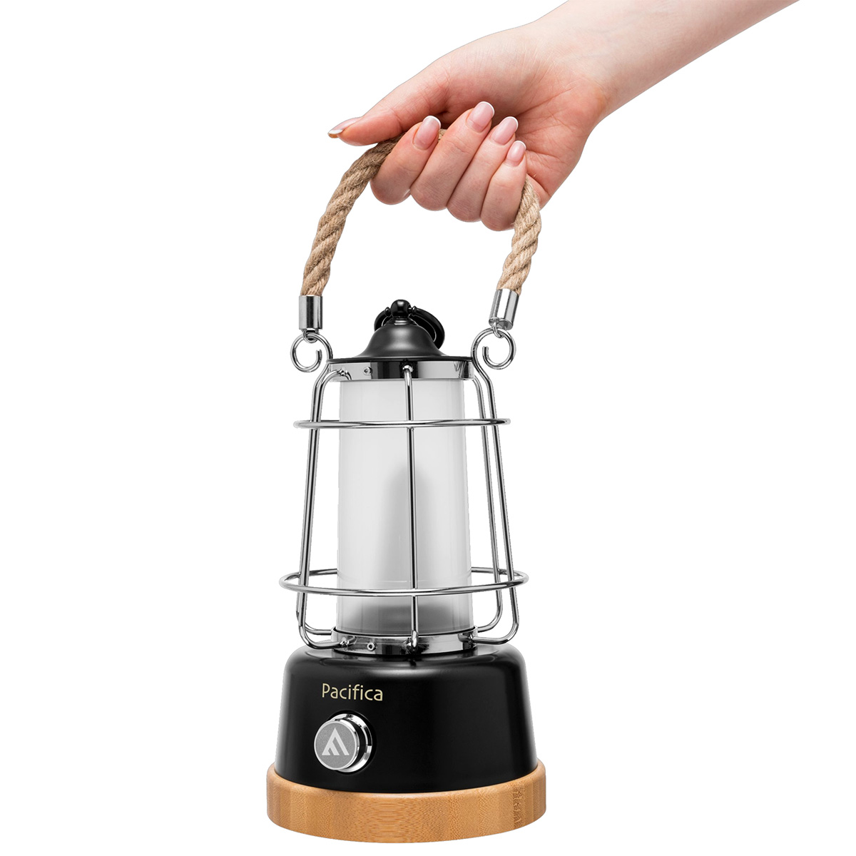 Mactronic Pacifica виготовлений з якісних матеріалів, які забезпечують йому довговічність – металевий корпус, решітка й кільце для підвішування, бамбукова основа з прогумованими ніжками, розсіювач із міцного матового полікарбонату та мотузкова ручка для перенесення. Захист від води за стандартом IPX4 дозволяє користуватися ліхтарем навіть під дощем.