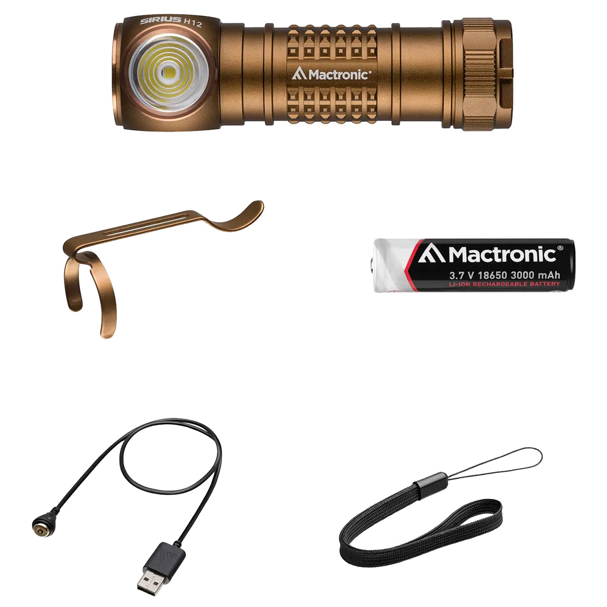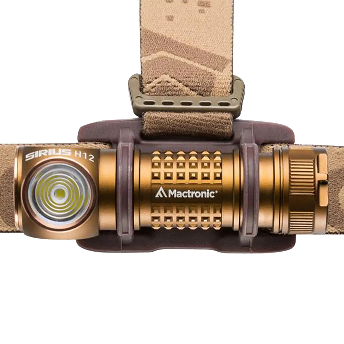 Налобний ліхтар Mactronic Sirius Н12 (1200 Лм) — компактний та одночасно досить потужний тактичний прилад зі знімними еластичними ременями. Дана модель важить всього 83 грами, при цьому здатна видавати світловий потік до 1200 люмен і працювати 400 годин (більше 16 діб) на одному заряді. Може також в повній мірі використовуватися як ручний ліхтар.