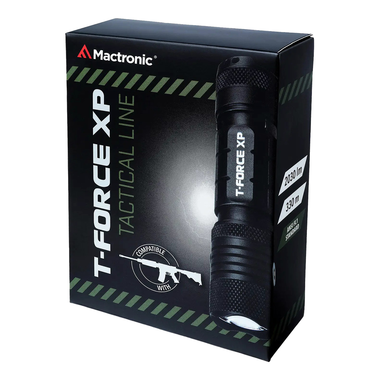 Mactronic T-Force XP (2030 Лм) — компактний та одночасно потужний далекобійний ліхтар, який призначений для роботи в екстремальних умовах. Відноситься до нового покоління тактичних ліхтарів відомого польського бренду Mactronic і є відмінним вибором для військових, працівників охоронних організацій та силових структур. Дану модель можна додатково укомплектувати підствольним кріпленням стандарту Picatinny і виносною кнопкою дистанційного керування.