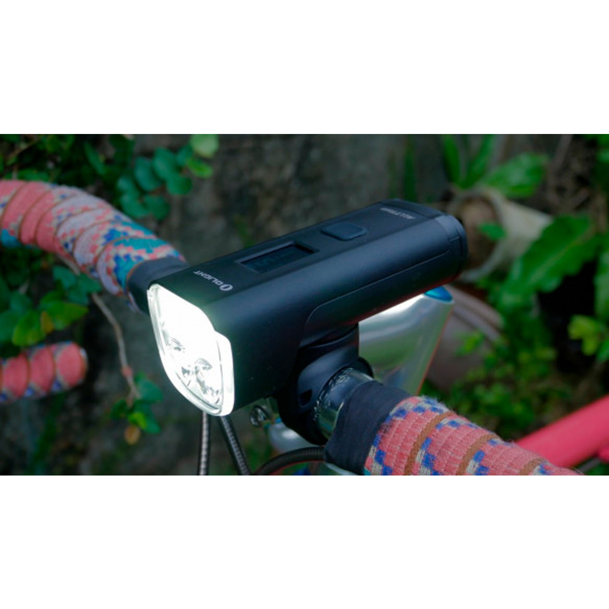 Ліхтар пропонує 4 гнучкі режими яскравості, які дозволяють адаптуватися до будь-яких умов освітлення та заощаджувати заряд. Керування здійснюється інтуїтивно, за допомогою однієї зручної бічної кнопки, яка легко знаходиться навіть у рукавичках. Особливістю моделі є мініекран (OLED), розташований у центральній частині корпусу. Він служить не лише як стандартний індикатор розрядження, але й відображає поточний час, дату та інші налаштування. При перемиканні режимів екран чітко показує залишок заряду батареї у відсотковому співвідношенні. Це дає повний контроль над автономністю та дозволяє впевнено планувати довгі поїздки.