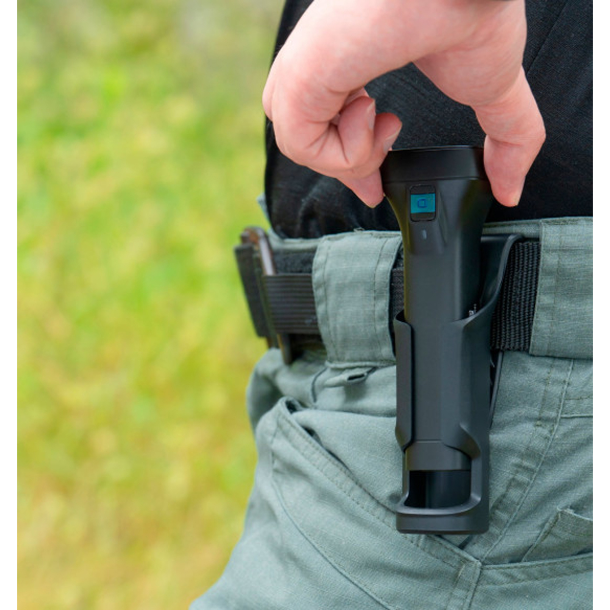 Живлення здійснюється від Li-Ion акумулятора місткістю 5000 мАг, який гарантує автономну роботу до 200 годин залежно від обраного режиму. Заряджання реалізовано через зручний магнітний порт, що спрощує підключення кабелю та підвищує герметичність конструкції. У комплекті передбачений чохол із кріпленням на пояс для комфортного транспортування. Вага ліхтаря становить 200 г, а довжина — 126 мм, роблячи його збалансованим та зручним для повсякденного носіння.