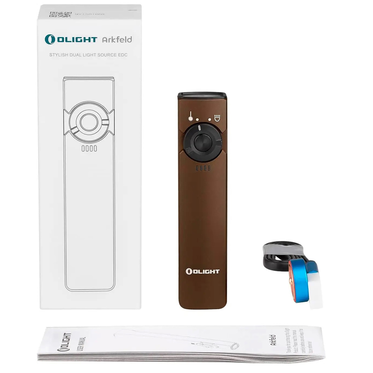 Olight Arkfeld Desert Tan — це багатофункціональний та стильний ліхтар, що поєднує у собі яскраве освітлення, зручний лазерний указівник та витривалу конструкцію в елегантному корпусі. Це відмінний вибір для тих, хто шукає надійний, практичний та сучасний освітлювальний інструмент для повсякденного використання.