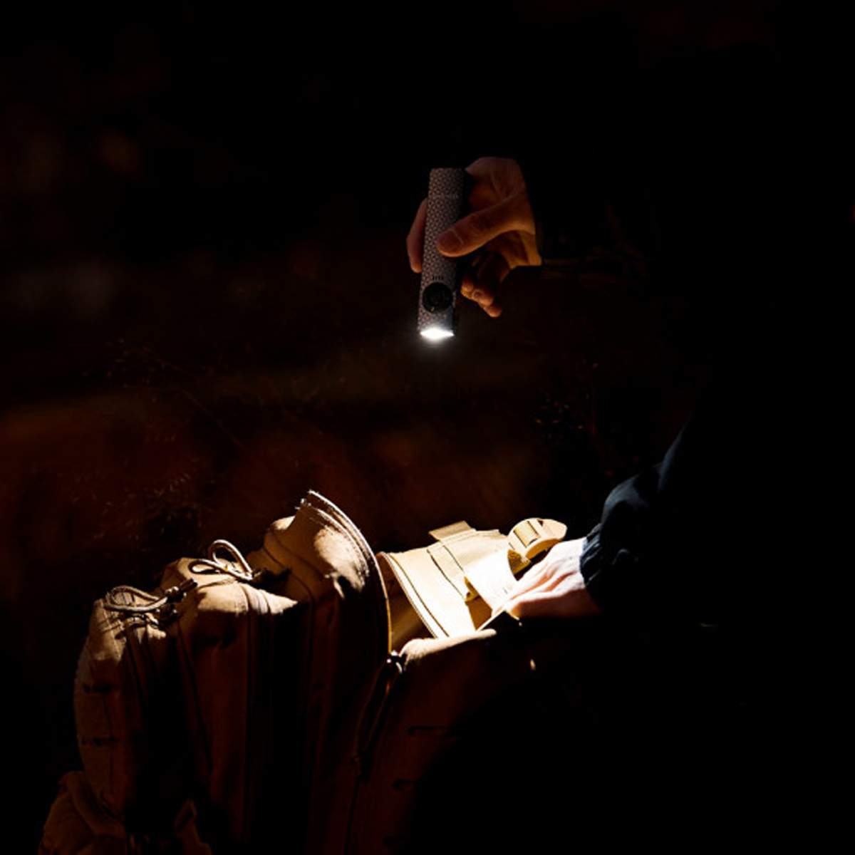 Завдяки ступеню захисту IPX7, ліхтар не боїться дощу, снігу чи випадкового занурення у воду на короткий час. Конструкція витримує падіння з висоти до 1 метра, що підтверджує високу ударостійкість і готовність до реальних навантажень. Магнітний порт забезпечує швидке та безпечне заряджання, а металева кліпса дозволяє надійно закріпити ліхтар на кишені, ремені або спорядженні. При вазі лише 87 грамів і довжині 110 мм він легко поміщається в долоні або кишені, не обтяжуючи користувача під час тривалого носіння.