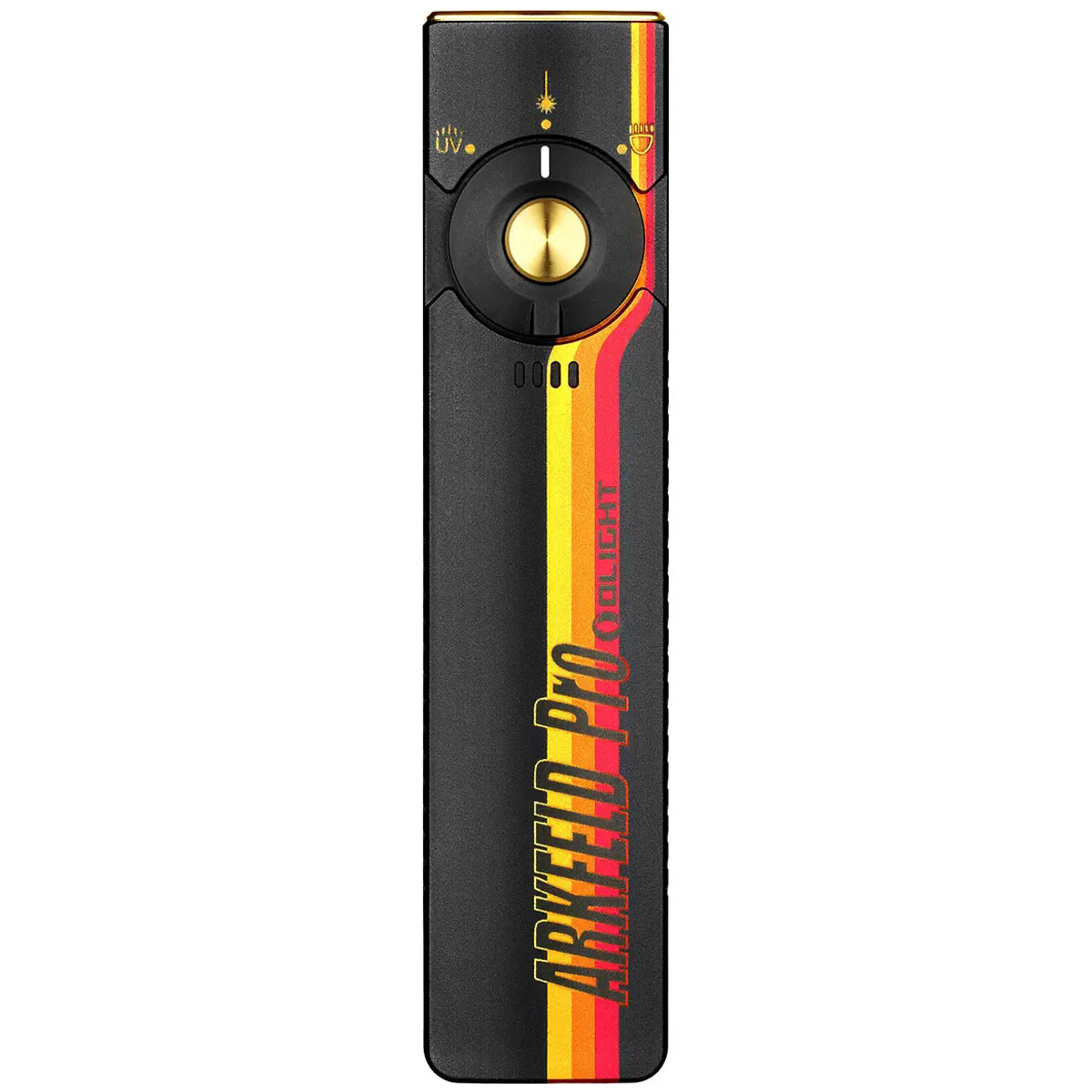 Ліхтар Olight Arkfeld Pro Class 3R CW Racing Stripes — це сучасний багатофункціональний пристрій освітлення, який вдало поєднує компактність, високу потужність і довговічність. Він стане надійним інструментом для повсякденного використання, подорожей, професійних завдань та спеціалізованих сценаріїв, де необхідне застосування УФ-променя чи лазера. Завдяки білому High-Performance LED світлодіоду в поєднанні з TIR-оптикою, ліхтар забезпечує потужний світловий потік до 1300 люменів, що дозволяє впевнено освітлювати навіть найтемніші ділянки. Дальність променя сягає 102 метрів, роблячи модель універсальною для ближніх і середніх відстаней. Холодний відтінок світла надає зображенню чіткості та гарантує природну передачу кольорів без спотворень.