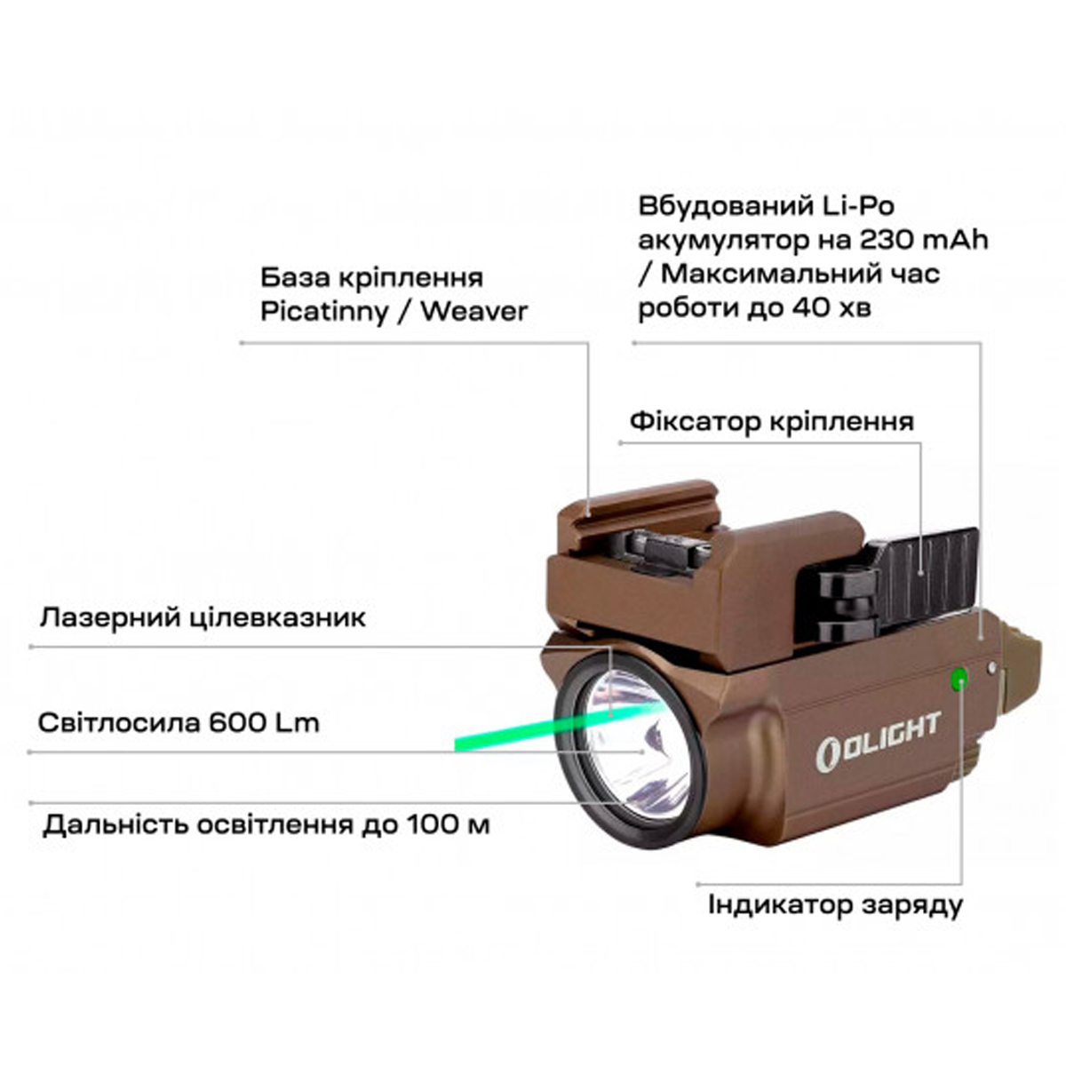 - ˳õòàð OLIGHT Baldr S (green laser) Desert Tan 6340ãðí.