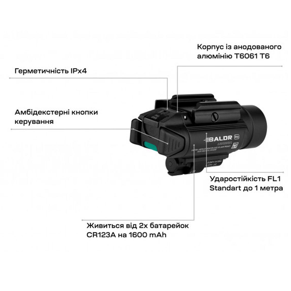 - Ліхтар OLIGHT Baldr Mini (green laser) Black з ЛЦВ 5980грн.