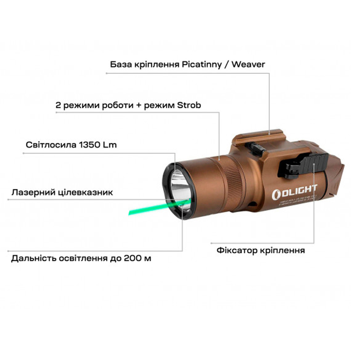- Ліхтар OLIGHT Baldr Mini (green laser) Desert Tan з ЛЦВ 5980грн.