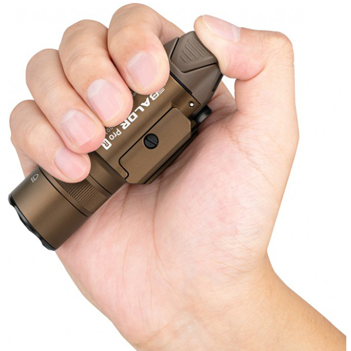Olight Baldr Pro R — це тактичний освітлювальний модуль, розроблений для професіоналів у правоохоронних органах, військових та для досвідчених стрільців, які вимагають надійності та потужності. Цей пристрій призначений для встановлення на пістолети та довгоствольну зброю, перетворюючи її на універсальний інструмент для роботи в будь-яких умовах освітлення. В основі ліхтаря лежить світлодіод білого світла Cree XH-P 35 HI, що генерує світловий потік у 1350 люменів. Завдяки прецизійній TIR-оптиці, він формує чітко сфокусований промінь, здатний освітлювати цілі на дистанції до 200 метрів. Інтегрований лазерний цілевказівник (ЛЦВ) зеленого кольору забезпечує миттєве та точне наведення на ціль, значно скорочуючи час прицілювання та підвищуючи ефективність стрільби.