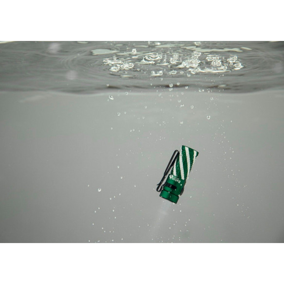 Корпус виготовлений із міцного анодованого алюмінію T6061-T6 — матеріалу, який широко використовується в авіаційній галузі завдяки своїй легкості та витривалості. Поверхня ліхтаря має додаткове анодування, яке ефективно протистоїть подряпинам і корозії навіть при інтенсивній експлуатації. Рівень захисту IPX8 гарантує повну водонепроникність — пристрій витримує занурення на глибину до 2 метрів без втрати працездатності. Крім того, ударостійкість до 1.5 метра дозволяє без остраху використовувати ліхтар у найсуворіших умовах — у горах, лісі або під час негоди.