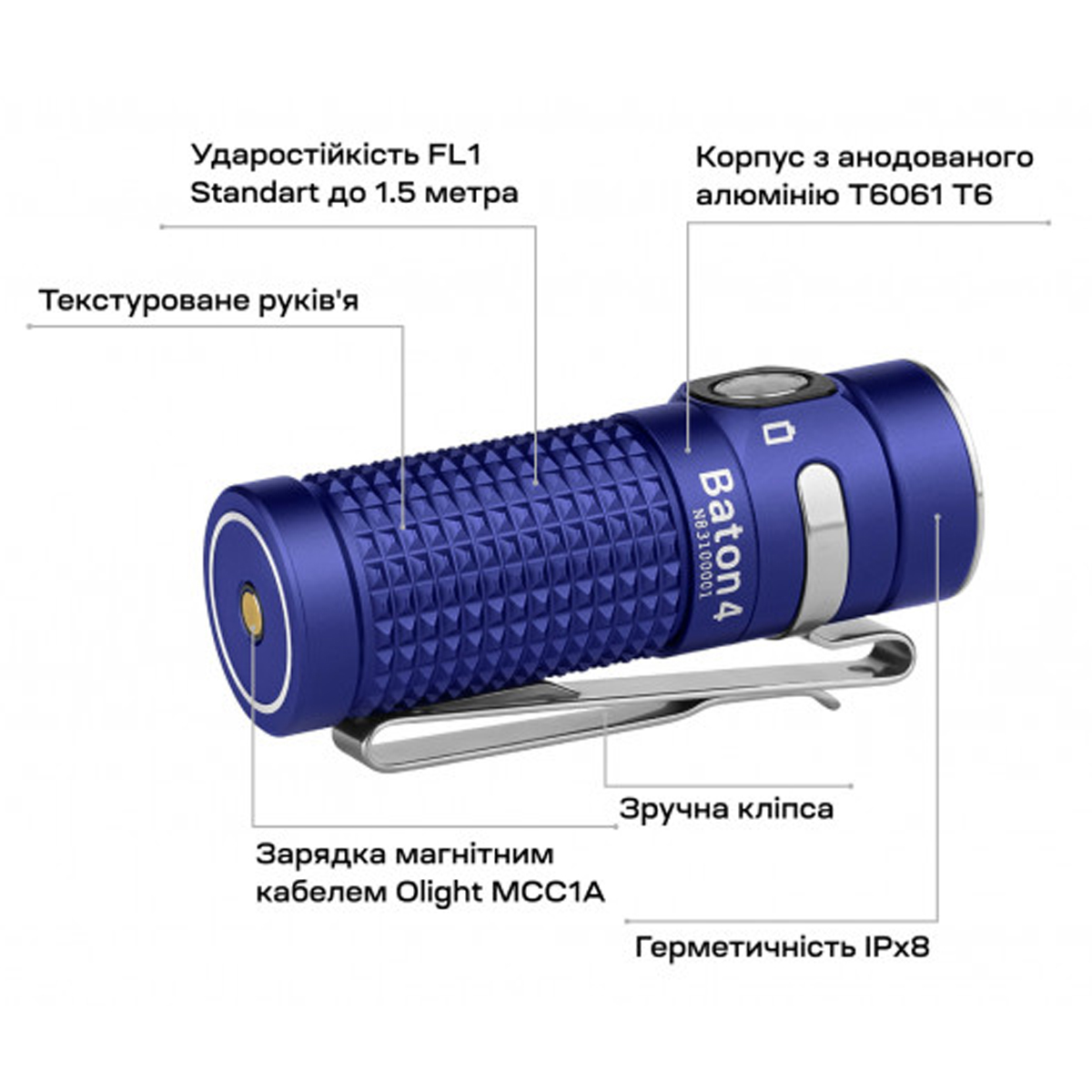 Ліхтар Olight Baton 4 — це надійний, якісний, компактний, і водночас досить продуктивний освітлювальний інструмент, який стане чудовим вибором для щоденного носіння та виконання широкого кола завдань.