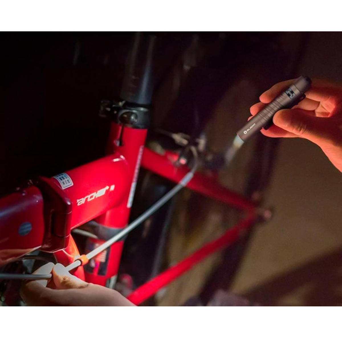 Живлення приладу здійснюється від батарейок формату ААА, роблячи його універсальним у різних ситуаціях. Завдяки компактним розмірам — довжині 89 мм та вазі лише 41 грам — ліхтар зручний у щоденному носінні й практично непомітний. Для додаткової зручності він оснащений надійною металевою кліпсою, яка дозволяє закріпити його на кишені, ремені чи спорядженні, забезпечуючи швидкий доступ у будь-який момент.