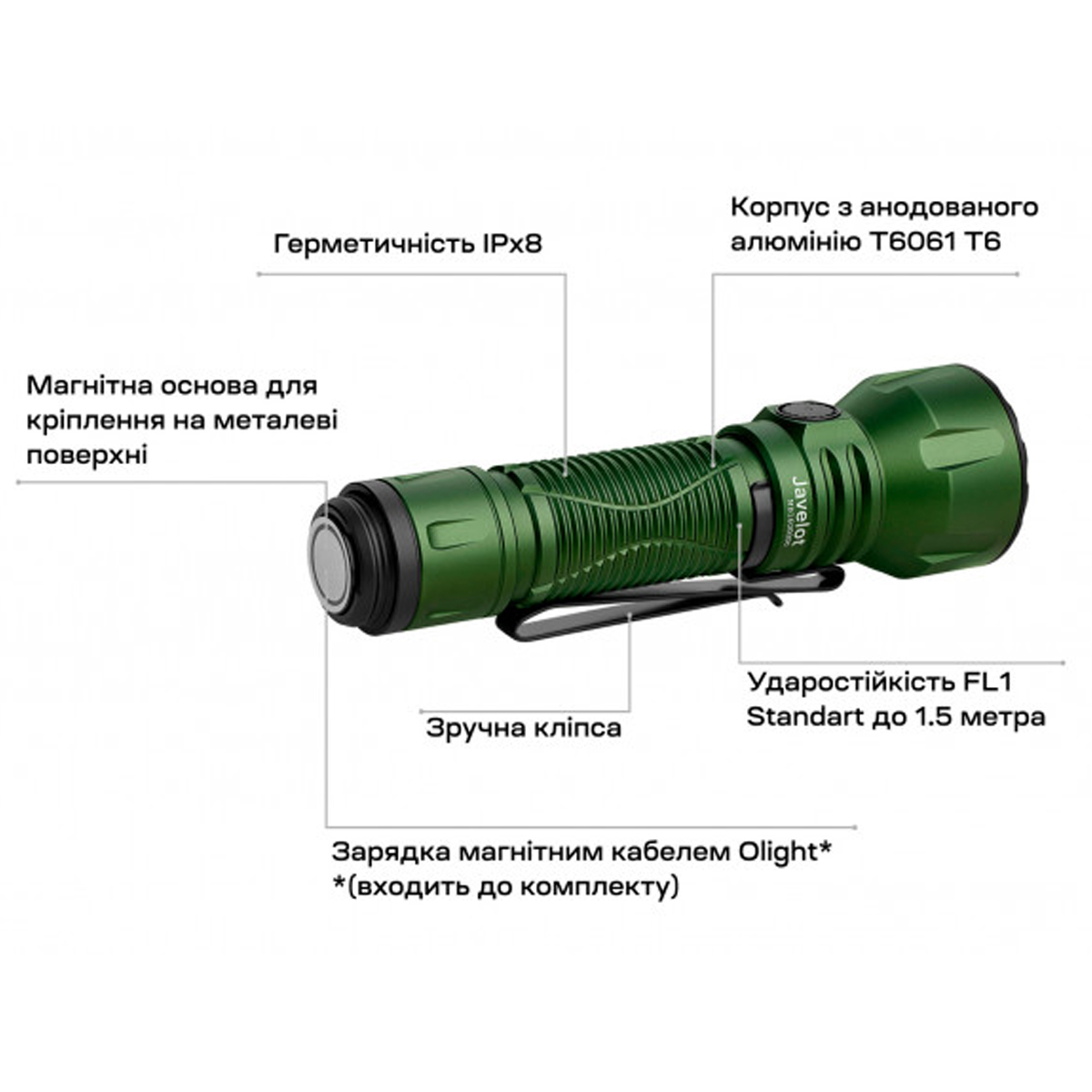 Olight Javelot OD Green — це високоефективний та збалансований освітлювальний інструмент, що поєднує компактність і велику далекобійність. Просте керування, тривалий час автономної роботи, надійний захист і продумана система зарядки роблять його відмінним вибором для мисливців, туристів, рятувальників та всіх користувачів, які віддають перевагу надійним і якісним рішенням.