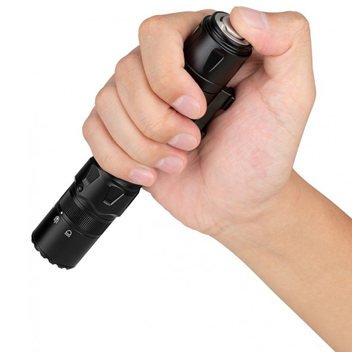Ліхтар має два основні режими яскравості, а вибір режиму роботи (лише світло, лише ЛЦУ, або світло та ЛЦУ одночасно) здійснюється за допомогою магнітного кільця, розташованого в головній частині. Це дозволяє заздалегідь налаштувати потрібну конфігурацію. Безпосереднє керування активацією відбувається через двопозиційну торцеву кнопку: легке натискання вмикає режим низької яскравості, повне — максимальної. Для ще більшої зручності в комплекті постачається виносна кнопка дистанційного керування з магнітним кріпленням, дозволяючи миттєво активувати ліхтар, не змінюючи хвату зброї. Інтегроване кріплення з інтерфейсом M-Lok забезпечує швидке, надійне та жорстке встановлення ліхтаря на відповідні цівки без необхідності використання додаткових перехідників.