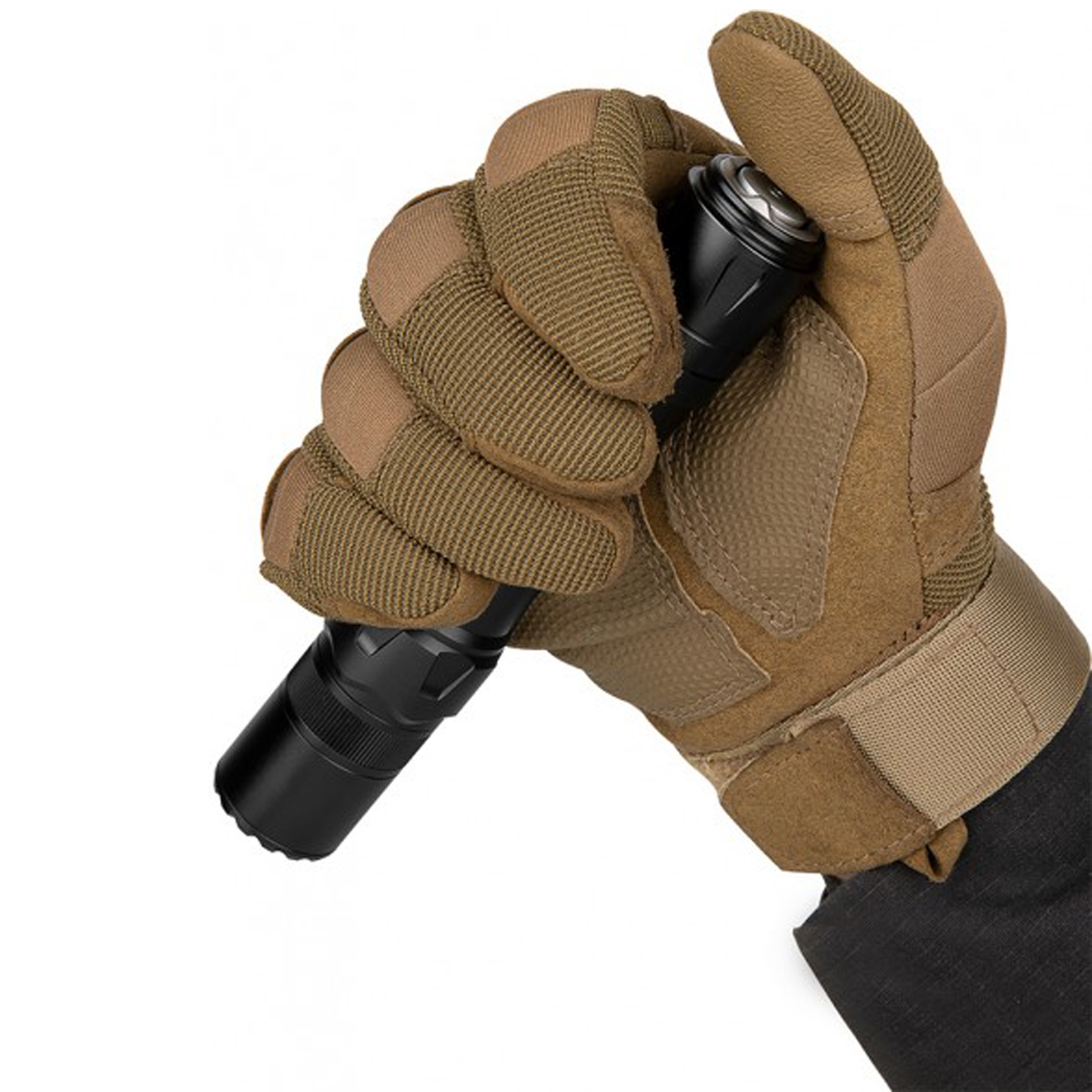 Корпус ліхтаря виготовлений з авіаційного алюмінієвого сплаву T6061-T6 з жорстким анодуванням III типу, це гарантує виняткову міцність, стійкість до подряпин та корозії. Конструкція розрахована на суворі умови експлуатації та витримує значні ударні навантаження, що підтверджено тестами на падіння з висоти до 1,5 метра. Захист від вологи відповідає стандарту IPX4, забезпечуючи безперебійну роботу пристрою під час дощу, снігу та в умовах підвищеної вологості. Безель агресивної форми не лише захищає оптику, але й може використовуватись як засіб самооборони в екстремальних ситуаціях.