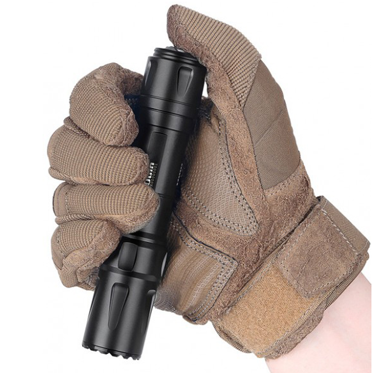 Система управління ліхтарем розроблена з урахуванням найвищих тактичних вимог. Користувачеві доступні 4 продумані режими роботи, що дозволяють гнучко адаптувати яскравість та час роботи під конкретне завдання. Керування здійснюється за допомогою двоступеневої торцевої кнопки: легке натискання активує економічний режим, а повне — миттєво вмикає максимальну яскравість. Для надійної інтеграції зі зброєю в комплекті йде швидкознімне кріплення на стандартну планку Picatinny, яке дозволяє встановлювати та знімати ліхтар одним рухом. Окремої уваги заслуговує виносна кнопка дистанційного керування з механізмом блокування, яка надійно фіксується на ліхтарі, унеможливлюючи випадкове від'єднання в найвідповідальніший момент.