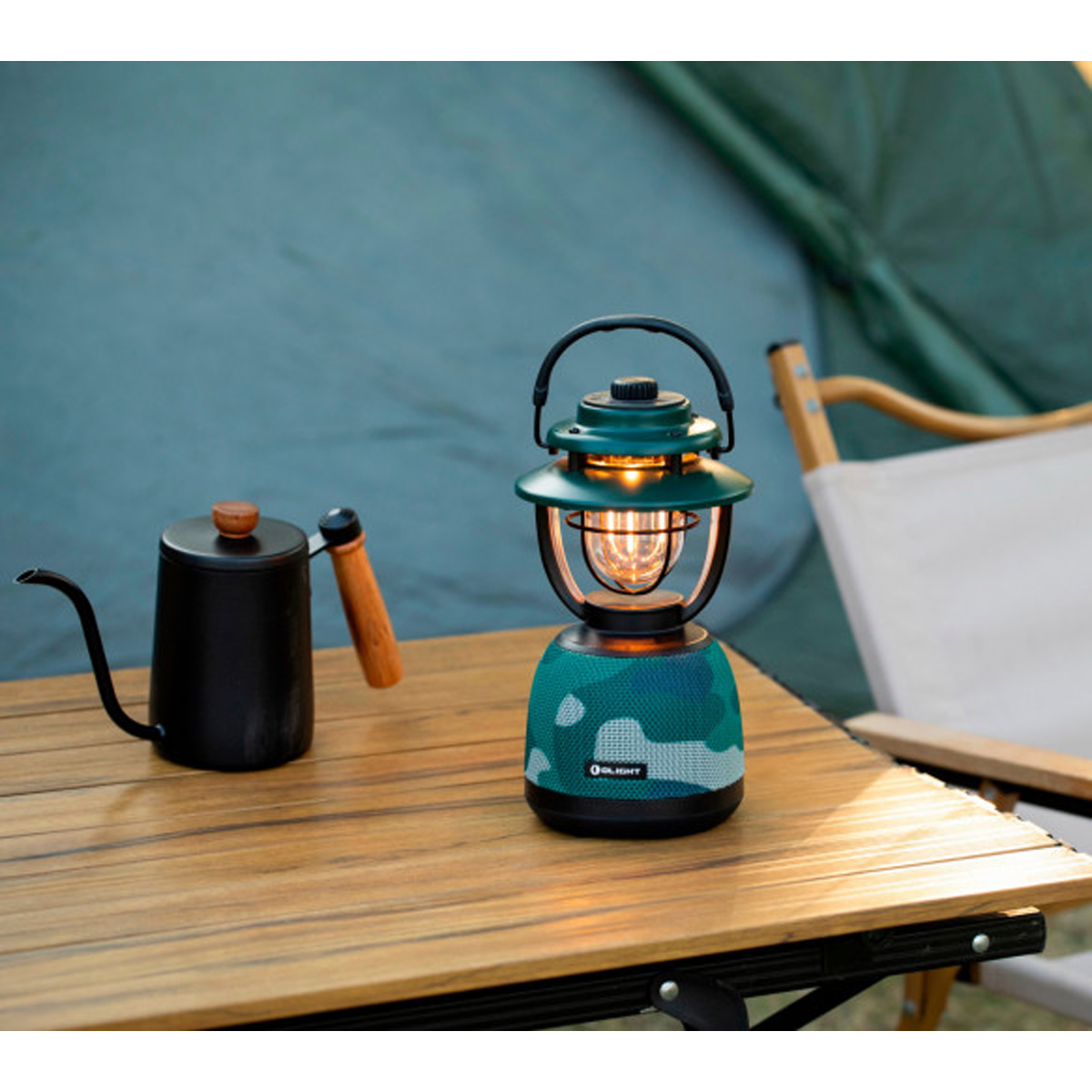Olight Olantern Music Camo – якісний сучасний ліхтар, що створений для незабутніх пригод. Оснащений високоефективним світлодіодом (High Performance LED), він генерує потужний світловий потік у 300 люменів, забезпечуючи м'яке та рівномірне освітлення на 360 градусів. Такої яскравості достатньо, щоб комфортно освітити простір у радіусі до 13 метрів, створюючи затишну атмосферу в наметі, на пікніку чи в кемпінговому таборі. Ексклюзивний камуфляжний дизайн робить його не лише функціональним, але й стильним аксесуаром.