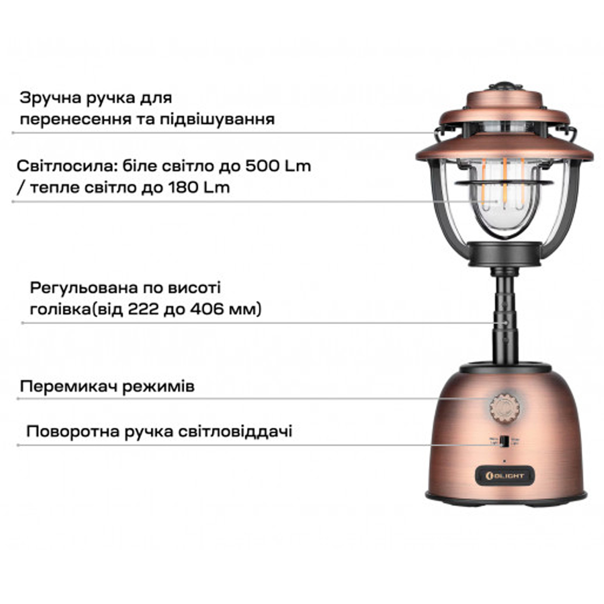 Ліхтар Olight Olantern Stretch у вишуканому вінтажному мідному кольорі є втіленням потужності, стилю та інновацій. Створений для поціновувачів відпочинку на природі, цей освітлювальний прилад підходить для кемпінгу, вечірніх зібрань у саду або як надійне джерело світла в екстрених ситуаціях.