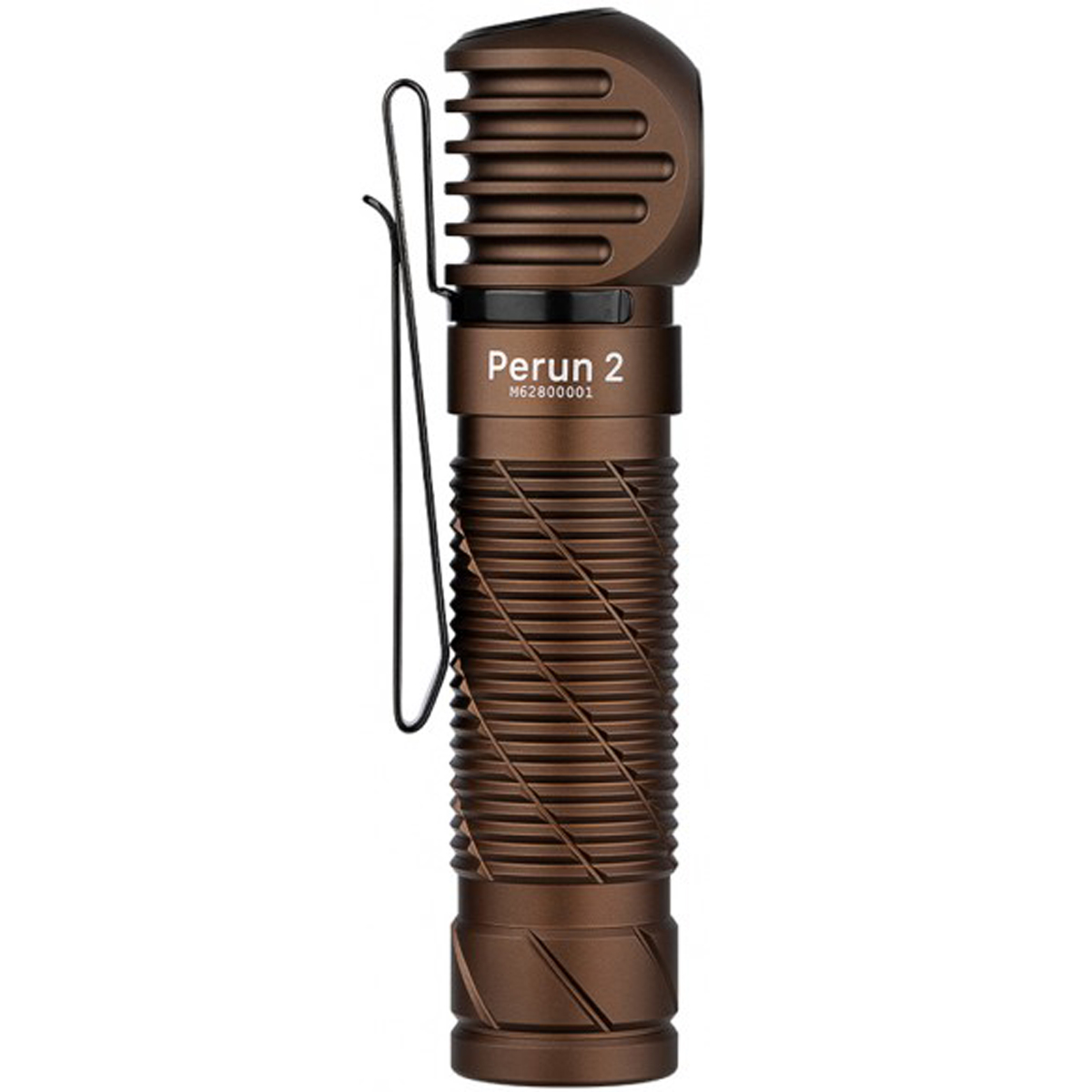Ліхтар Olight Perun 2 — це сучасний високопродуктивний інструмент освітлення Г-подібної форми, створений для широкого спектра завдань: туризму, активного відпочинку, професійного використання та щоденних потреб. В його основі використовується потужний світлодіод Cree XH-P 50 CW, який випромінює біле світло з інтенсивністю 2500 люменів. Такий яскравий промінь дозволяє впевнено освітлювати простір на відстані до 166 метрів. Оптична система моделі забезпечує рівномірний та широкий потік світла, що гарантує комфортний огляд великих площ і зручність роботи на ближніх дистанціях без затемнених ділянок.