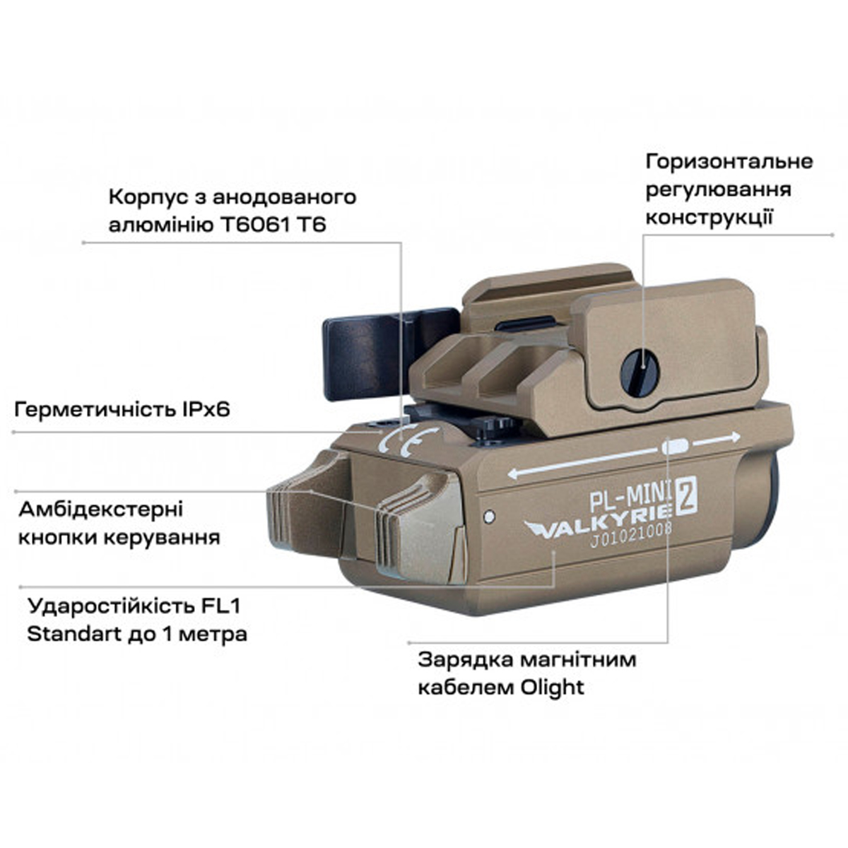 Olight PL-Mini 2 Valkyrie — це ультракомпактний підствольний ліхтар, який поєднує високу яскравість, надійну конструкцію, зручну систему кріплення з можливістю точного позиціювання та продуману систему заряджання. Завдяки цим властивостям він є відмінним рішенням для власників пістолетів і карабінів, котрі шукають легкий, довговічний і потужний тактичний ліхтар для щоденного використання та екстрених ситуацій.