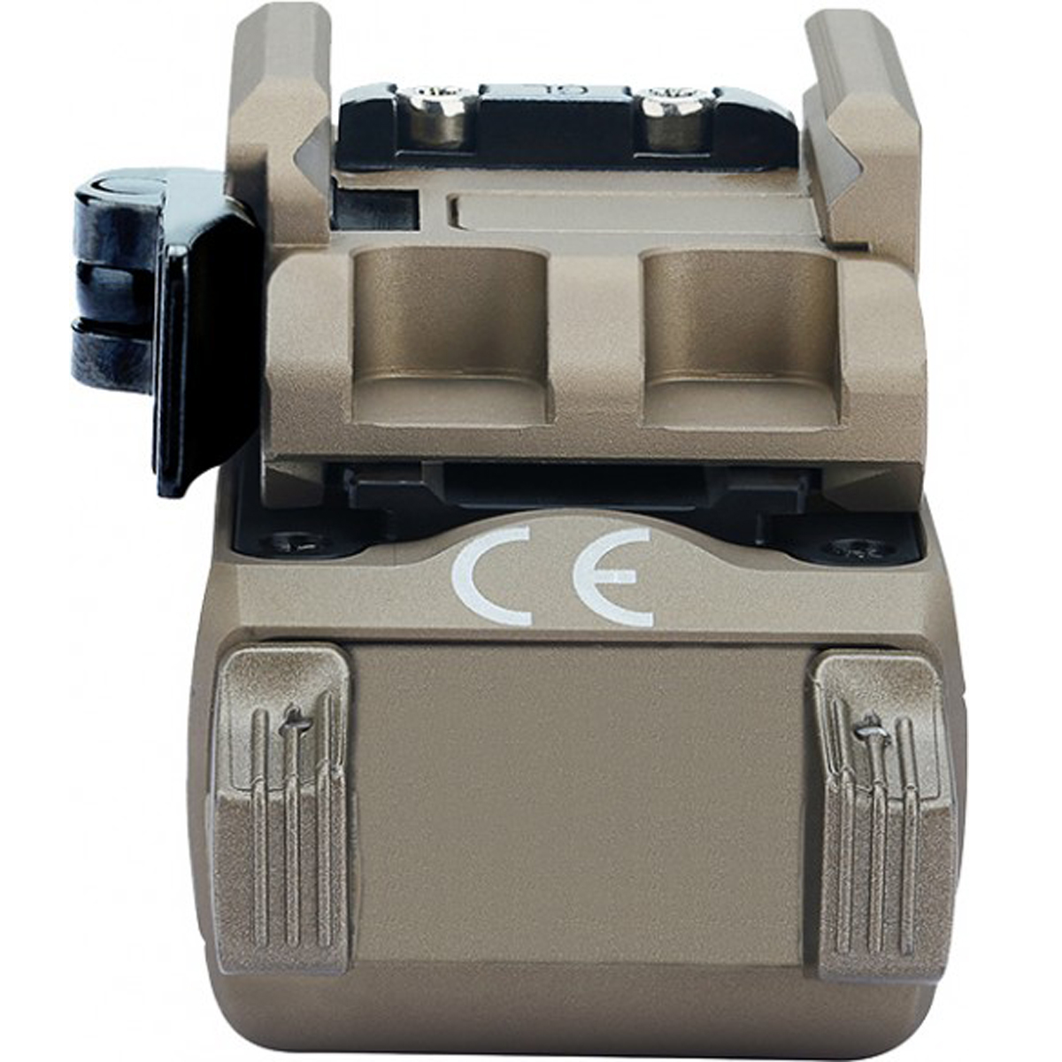Управління пристроєм максимально просте та інтуїтивне — один універсальний режим роботи дозволяє уникнути зайвих перемикань і миттєво активувати світло у напруженій ситуації. Керування реалізовано через двосторонні торцеві кнопки, які зручно натискати як правшам, так і шульгам, дозволяючи оперативно реагувати без зміни хвату. Серед конструктивних переваг — швидкознімне кріплення, сумісне зі стандартами планок Weaver та Picatinny (MIL-STD-1913). Кріплення також дозволяє коригувати горизонтальне положення ліхтаря вздовж планки, даючи змогу ідеально відрегулювати його положення під конкретну модель пістолета чи карабіну.