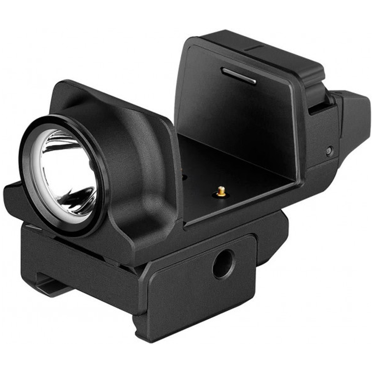 Керування ліхтарем реалізоване за допомогою двох торцевих кнопок, що дозволяє однаково комфортно використовувати його як правші, так і шульзі. Ліхтар має один основний режим постійного світла та тактичний режим Strob для дезорієнтації супротивника. Універсальність кріплення – одна з ключових переваг моделі. Завдяки швидкознімному механізму та комплектним адаптерам для планок Picatinny (1913), GL та Hellcat, ліхтар легко встановлюється на переважну більшість сучасних пістолетів. Крім того, система горизонтального регулювання дозволяє зміщувати корпус ліхтаря вздовж планки, підлаштовуючи його положення для ідеального доступу до органів керування без зміни хвату.