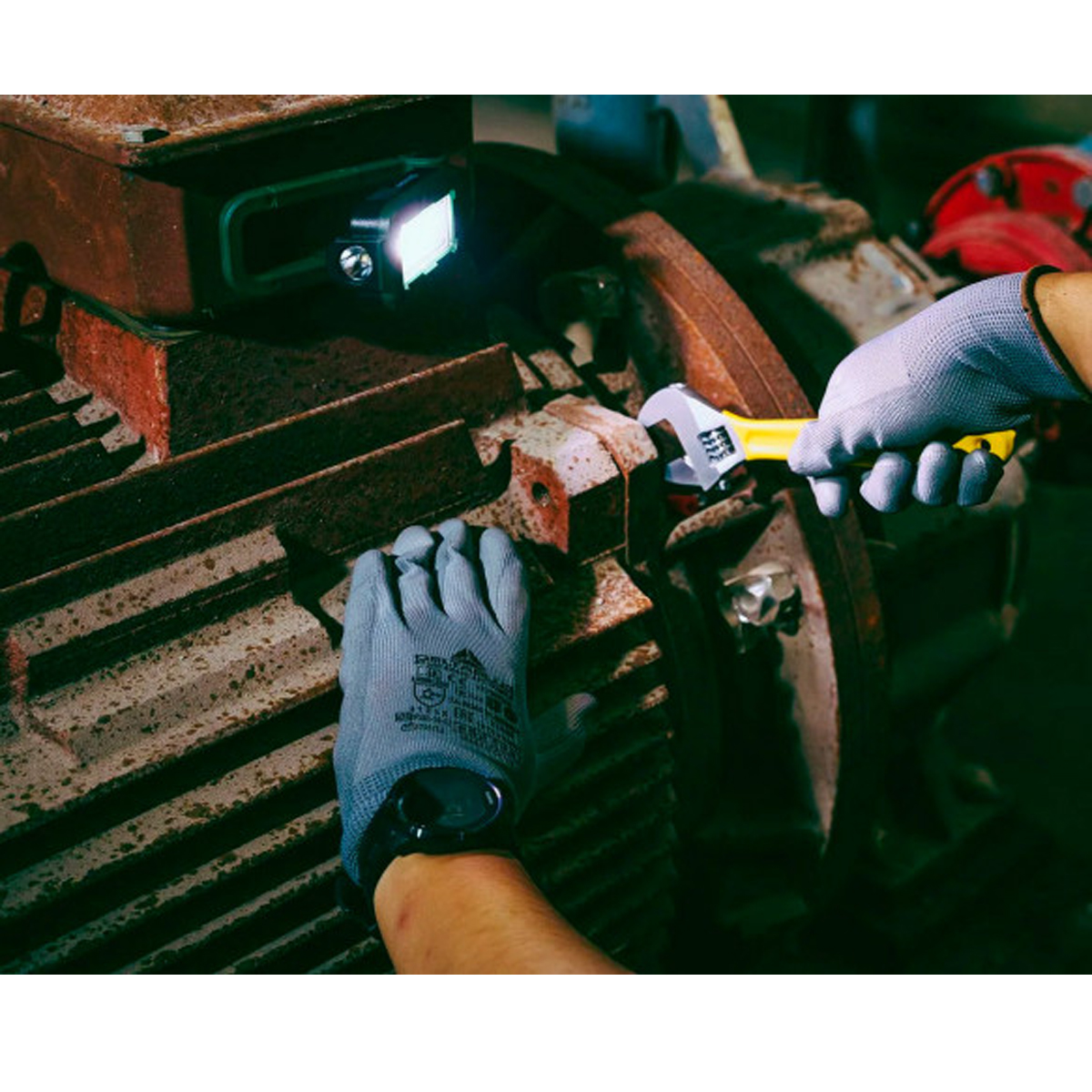 Модель оснащена 5 режимами яскравості, які дозволяють точно налаштувати інтенсивність світла під конкретне завдання — від мінімального підсвічування для близької роботи до потужного потоку, що забезпечує максимальний огляд. Управління здійснюється зручною бічною кнопкою, яка дозволяє швидко перемикати режими навіть у робочих рукавичках. Конструкція пристрою складається з двох частин — основного корпусу з освітлювальним блоком і універсальної підставки-карабіна, завдяки якій ліхтар можна надійно встановити на металевій поверхні, підвісити або зафіксувати під потрібним кутом для точного направлення світлового потоку.