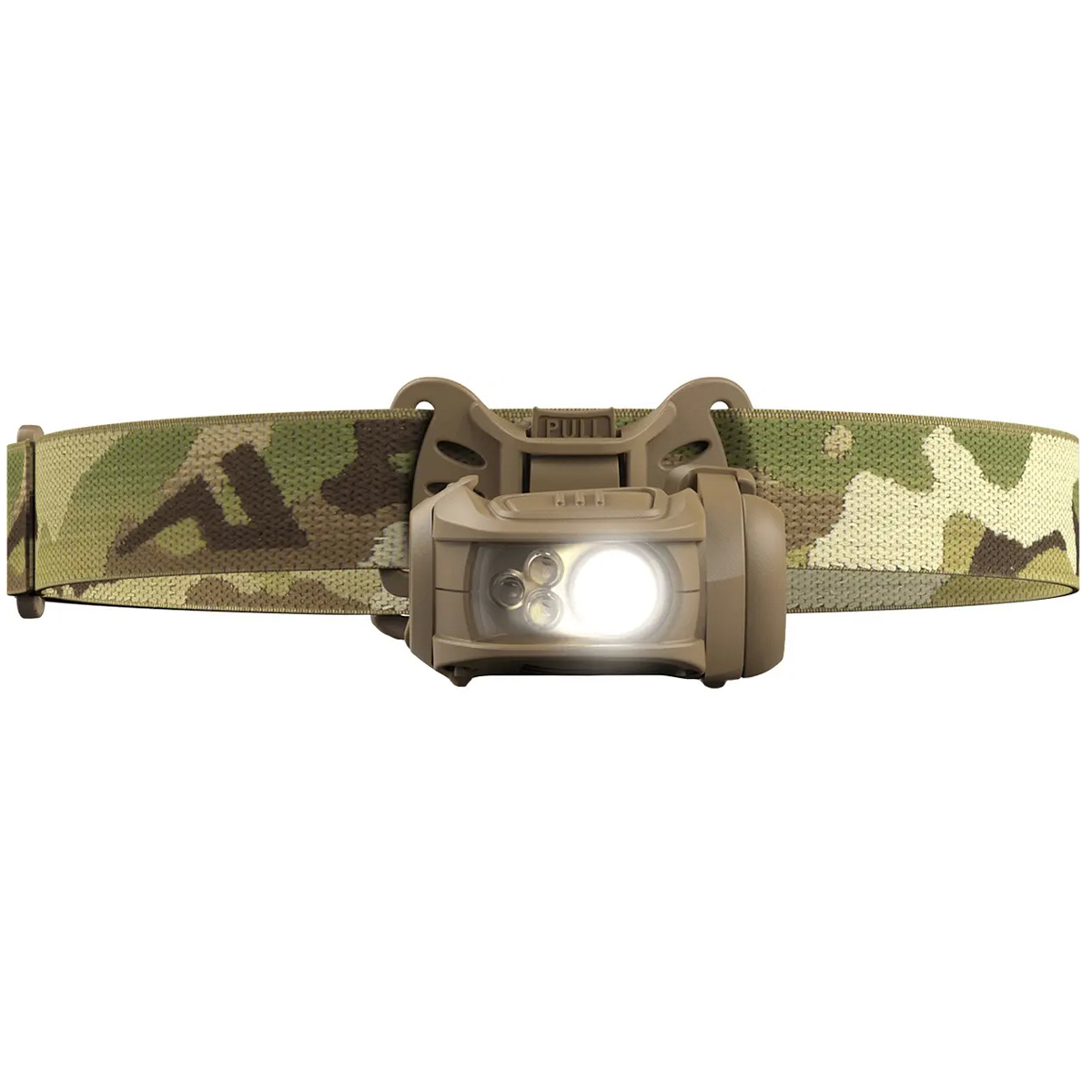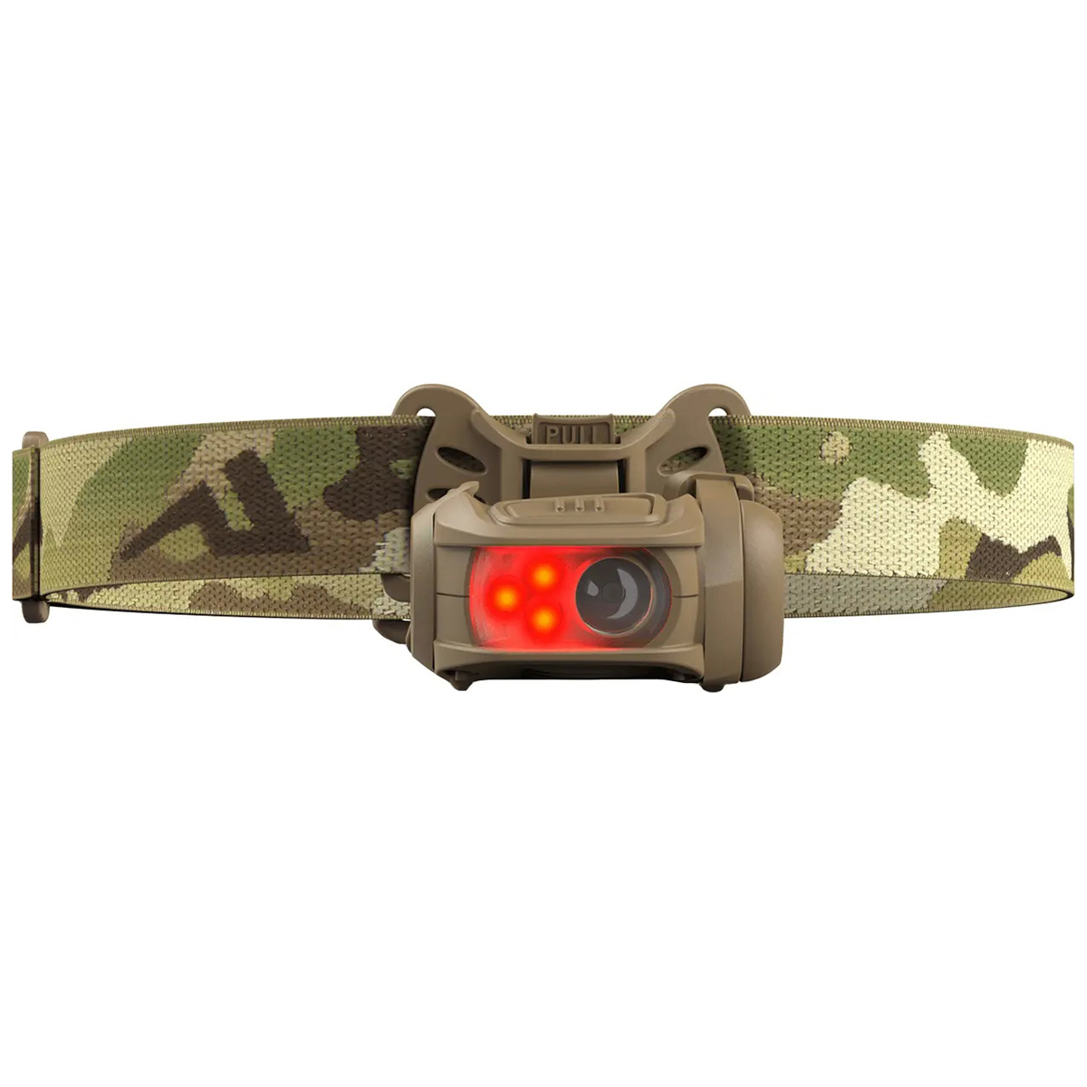 Модель оснащена чотирма режимами яскравості, дозволяючи вибрати оптимальний рівень освітлення під конкретні умови — від приглушеного м’якого світла до максимально інтенсивного променя для повного огляду місцевості. Керування ліхтарем здійснюється за допомогою великої кнопки, розташованої у верхній частині корпусу, яку легко натискати навіть у рукавицях або в процесі руху. Однією з головних переваг пристрою є наявність системи кріплення MPLS, що дозволяє використовувати ліхтар не лише з налобним ременем, а й фіксувати його на тактичному шоломі або системі MOLLE. Така універсальність значно розширює можливості експлуатації — пристрій зручний як у польових умовах, так і під час тренувань, рятувальних операцій, кемпінгу чи трекінгу.