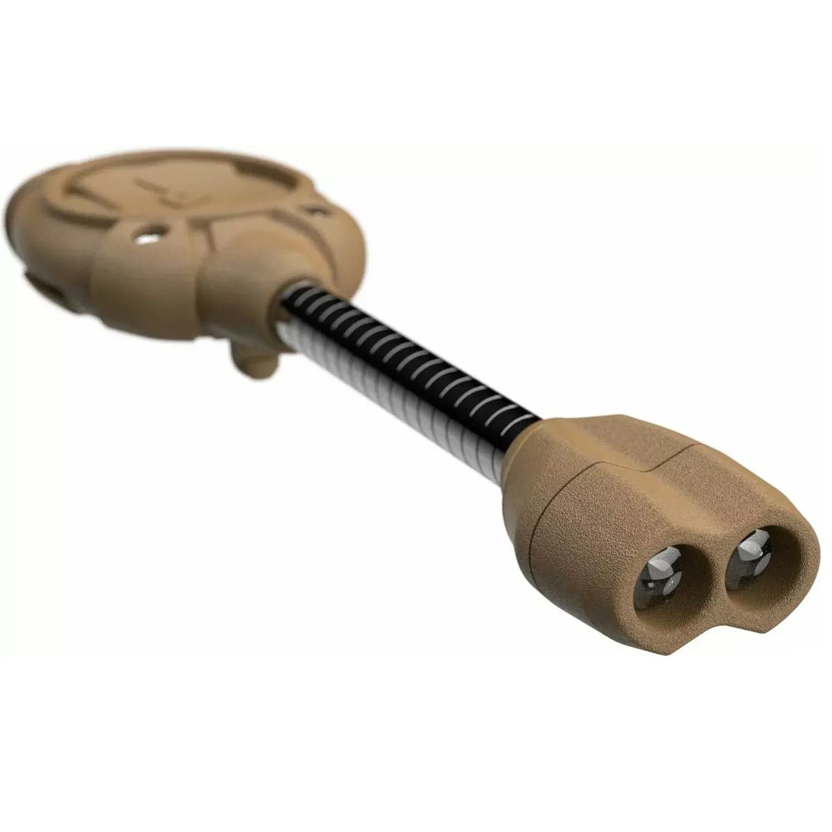 Корпус виготовлений з композитного полімеру, який поєднує високу міцність із мінімальною вагою. Ліхтар живиться від двох літієвих елементів CR2016, завдяки чому досягається до 20 годин безперервної роботи. Вбудована гнучка рухома голівка дозволяє точно направляти промінь під будь-яким кутом, суттєво підвищуючи точність освітлення без зміни положення шолома або голови користувача.
