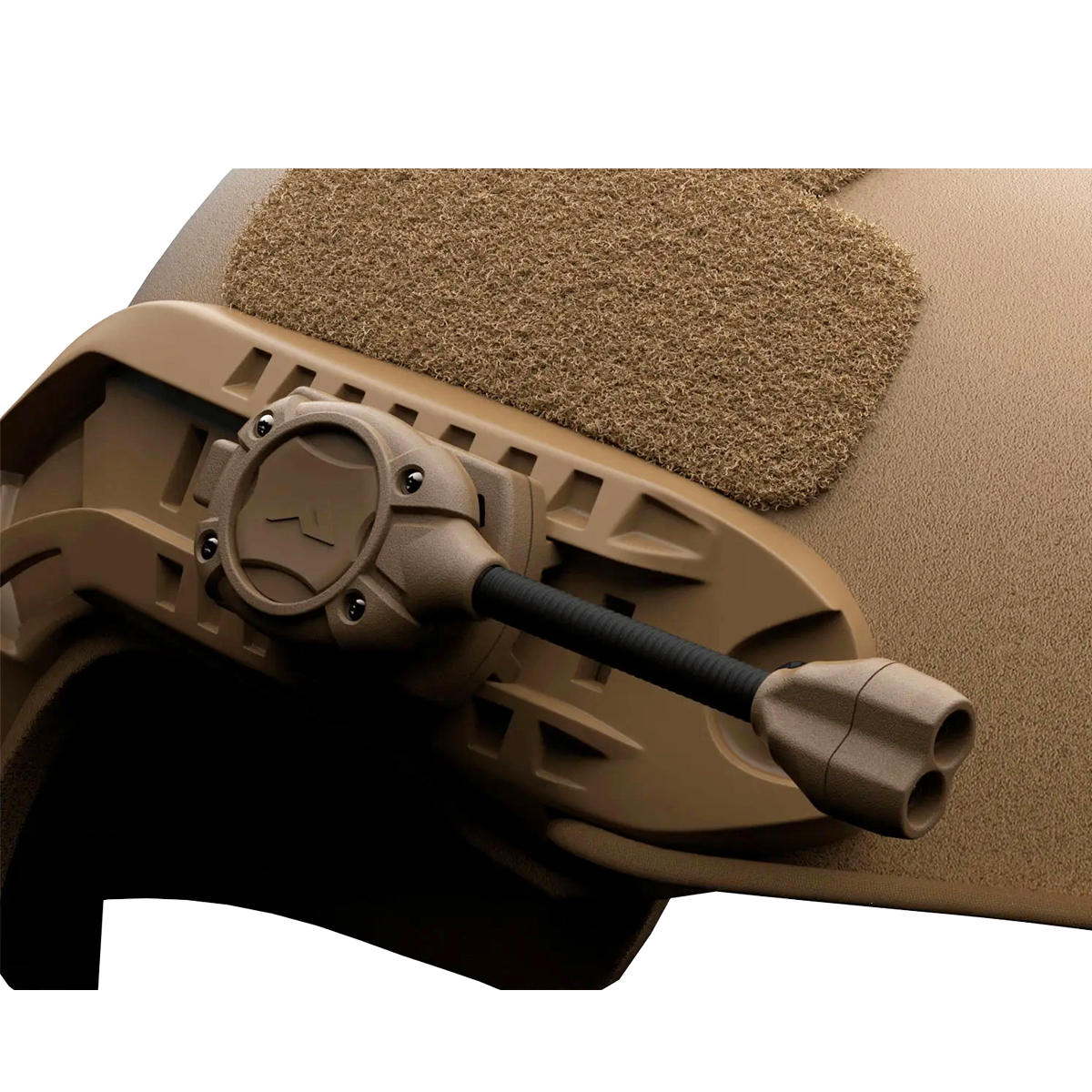 Стандарт IPX4 гарантує захист від дощу, бризок і вологої погоди, роблячи ліхтар придатним для використання у польових умовах. У комплекті передбачено базове кріплення під шоломні рейки (Helmet Rail / ARC), а також додаткові адаптери, які дозволяють встановлювати пристрій на планки Picatinny, M-LOK або закріплювати на спорядженні з системою MOLLE/PALS. Завдяки вазі всього 17 г, ліхтар не створює навантаження та не впливає на баланс спорядження.
