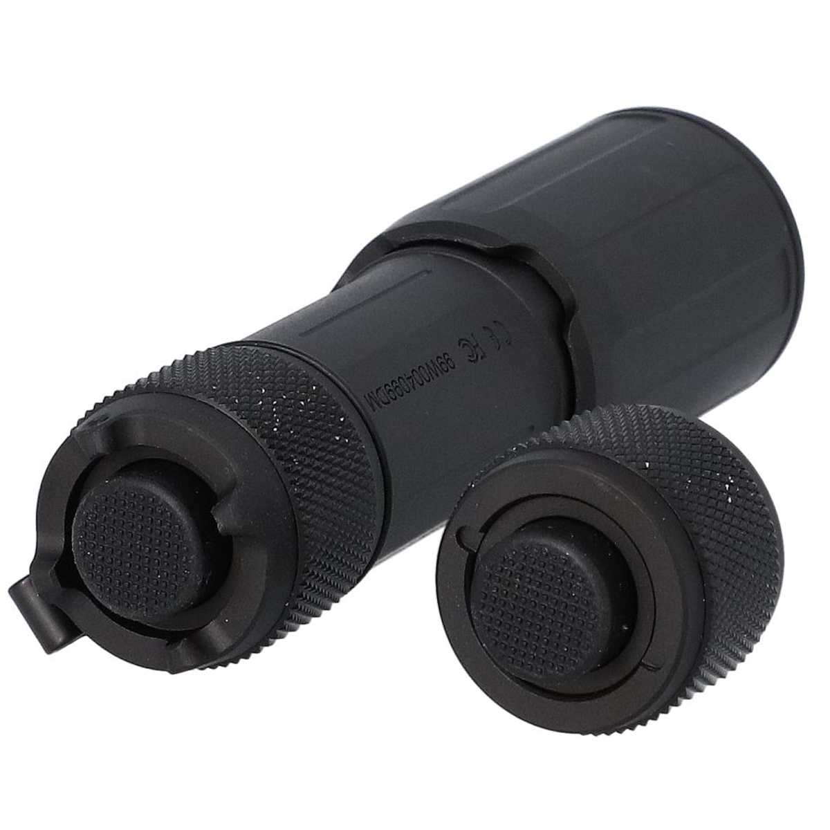 Конструкція ліхтаря передбачає наявність двох режимів роботи — моментального (тимчасового) та фіксованого, це дозволяє швидко адаптувати освітлення до конкретної ситуації. Керування здійснюється за допомогою однієї зручної кнопки, яка гарантує швидкий доступ до потрібного режиму навіть у рукавицях чи при обмеженій видимості. У комплекті передбачено два змінних хвостових ковпачки: стандартний та варіант із захисною коронкою, який підвищує функціональність і безпеку у використанні. Корпус виготовлений з високоякісного анодованого алюмінію 6061, гарантуючи міцність, стійкість до механічних навантажень та довговічність. Ступінь захисту IPX7 гарантує працездатність при зануренні у воду та надійність у будь-яких погодних умовах.
