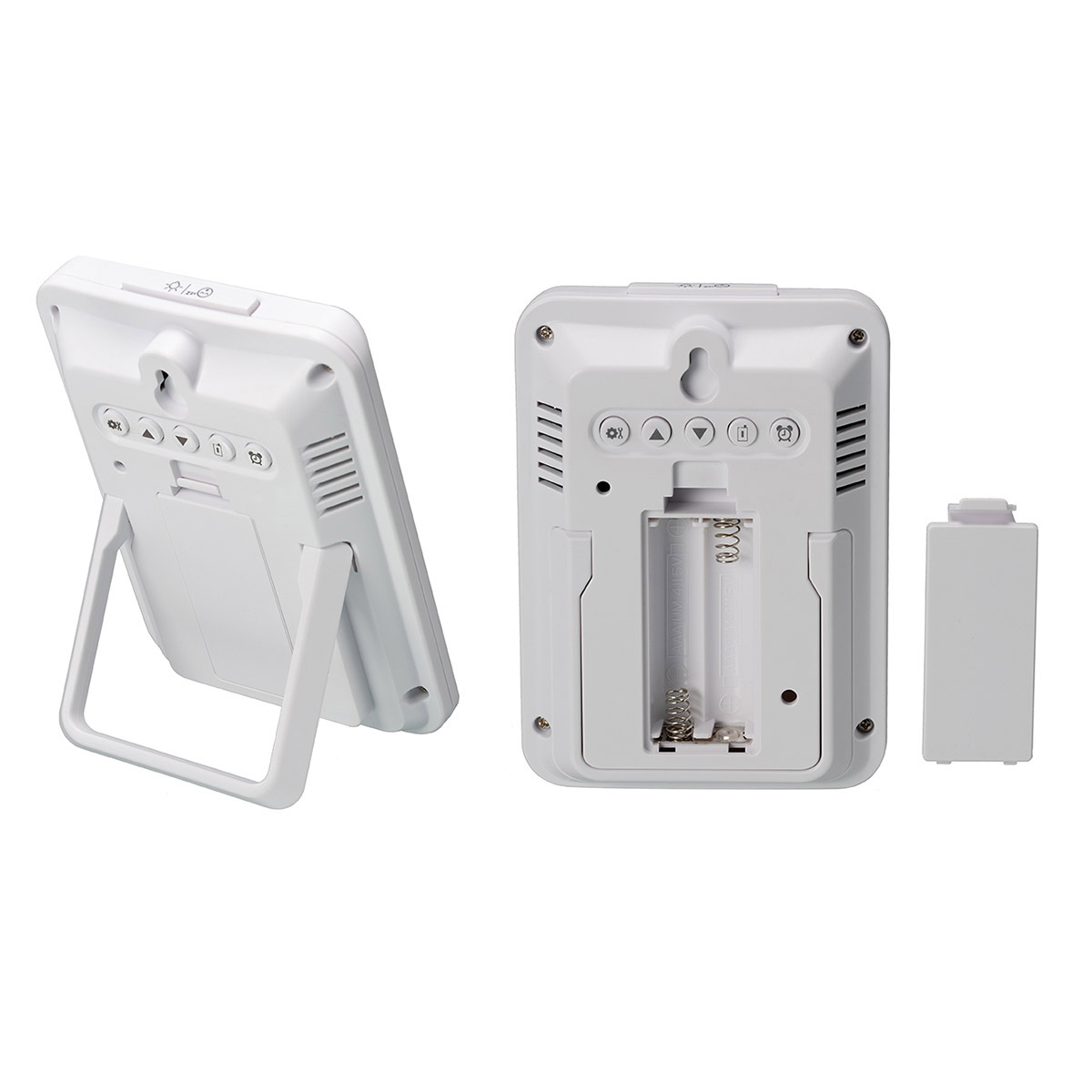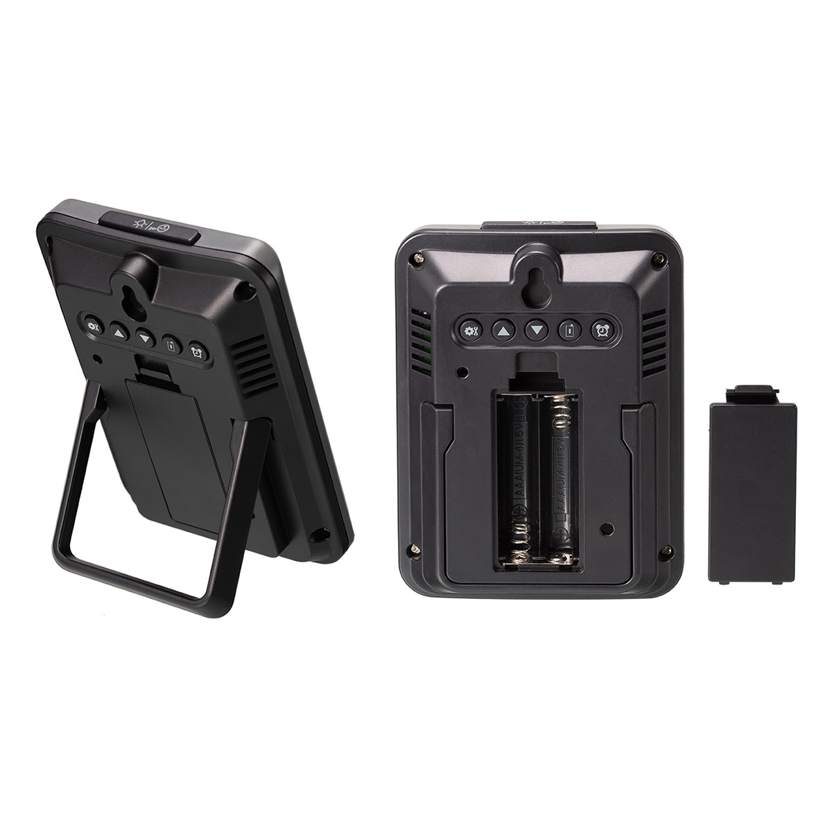 Завдяки двом приймальним станціям (біла та чорна) з цифровим дисплеєм можна стежити за показаннями з 2-х окремих приміщень. Показники температури та вологості можуть зніматися в 5 різних точках. Датчики розраховані на передачу сигналу на відстань до 50 м. На дисплеях приймальних станцій відображається час, дата, день тижня, температура та вологість. Індикатор рівня комфорту у вигляді "смайлика" вкаже, чи комфортні показники температури та вологості. Модель також оснащена будильником та підсвічуванням.