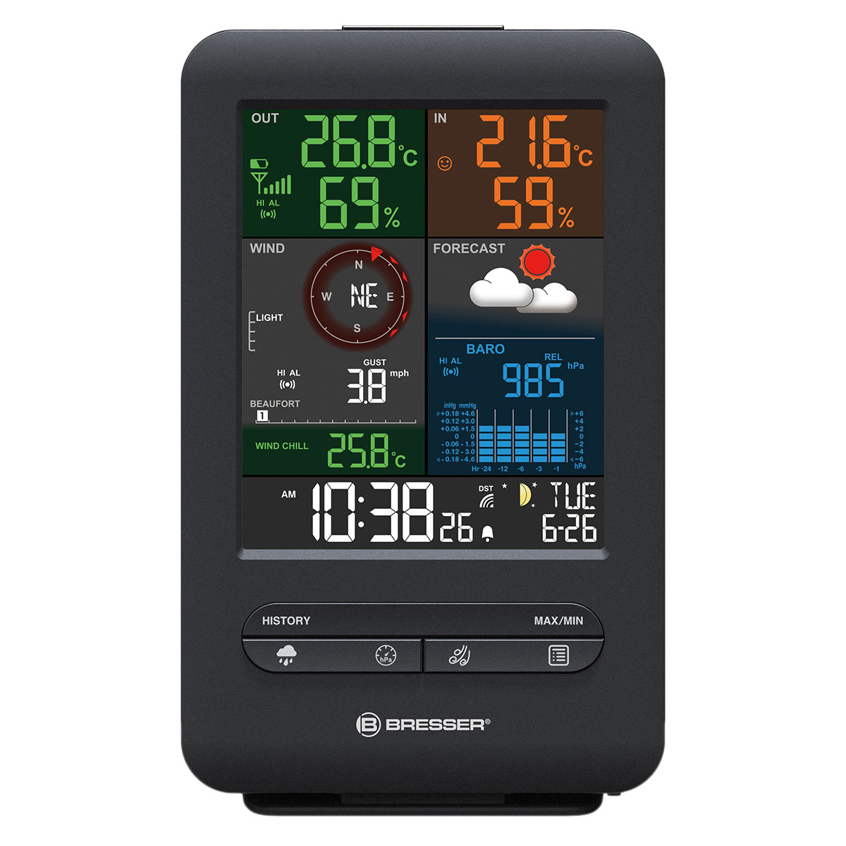 - Метеостанція BRESSER Weather Center 5-in-1 Comfort Colour (Black)