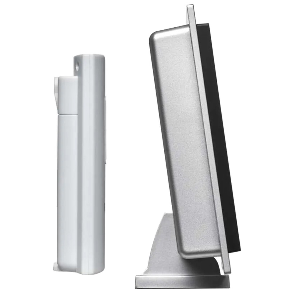 EMOS AOK-5018B вирізняється лаконічним і водночас елегантним дизайном: чіткий монохромний дисплей у чорній рамці доповнено сріблястим обрамленням. Завдяки знімній підставці та петлі для підвішування прилад можна розмістити на столі, полиці або закріпити на стіні – залежно від інтер’єру та особистих уподобань.