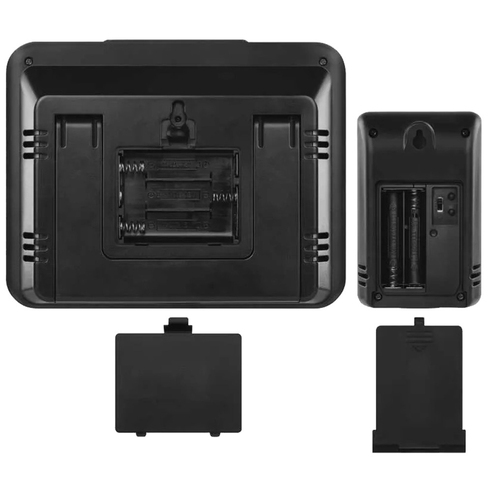 До комплекту постачання входить бездротовий зовнішній датчик, який можна встановити на відстані до 60 метрів. За потреби метеостанція підтримує підключення до трьох датчиків одночасно – для контролю температури й вологості в різних місцях. Датчик живиться від двох батарейок AAA, а сама метеостанція – від трьох батарейок AA (елементи живлення не входять до комплекту постачання).