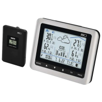Метеостанція вимірює внутрішню та зовнішню температуру й вологість, відображаючи не лише поточні, а й мінімальні та максимальні значення. Поруч із показниками температури й вологості розташовані стрілки, що демонструють тенденції їх зміни – підвищення, стабільність або зниження. Вбудований барометр визначає атмосферний тиск, який подається у цифровому вигляді та у формі графічної історії за останні 12 годин. На основі інформації про тиск формується символьний прогноз погоди на найближчі 12-24 години.