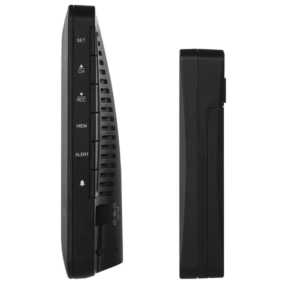 До комплекту постачання входить бездротовий датчик температури та вологості, який можна розмістити на відстані до 80 метрів. Загалом метеостанція підтримує підключення трьох датчиків, що дозволяє контролювати показники одночасно в кількох різних місцях. Датчик живиться від двох батарейок типу AA, а метеостанція – від мережі змінного струму через адаптер або трьох батарейок типу АА.
