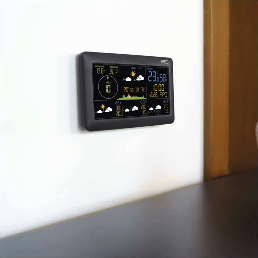 EMOS E0389 – сучасна функціональна метеостанція з вбудованим Wi-Fi модулем, яка відображає точні погодні дані без використання зовнішнього датчика. Уся інформація надходить безпосередньо з інтернет-сервера, а налаштування та керування приладом здійснюється через мобільний додаток.