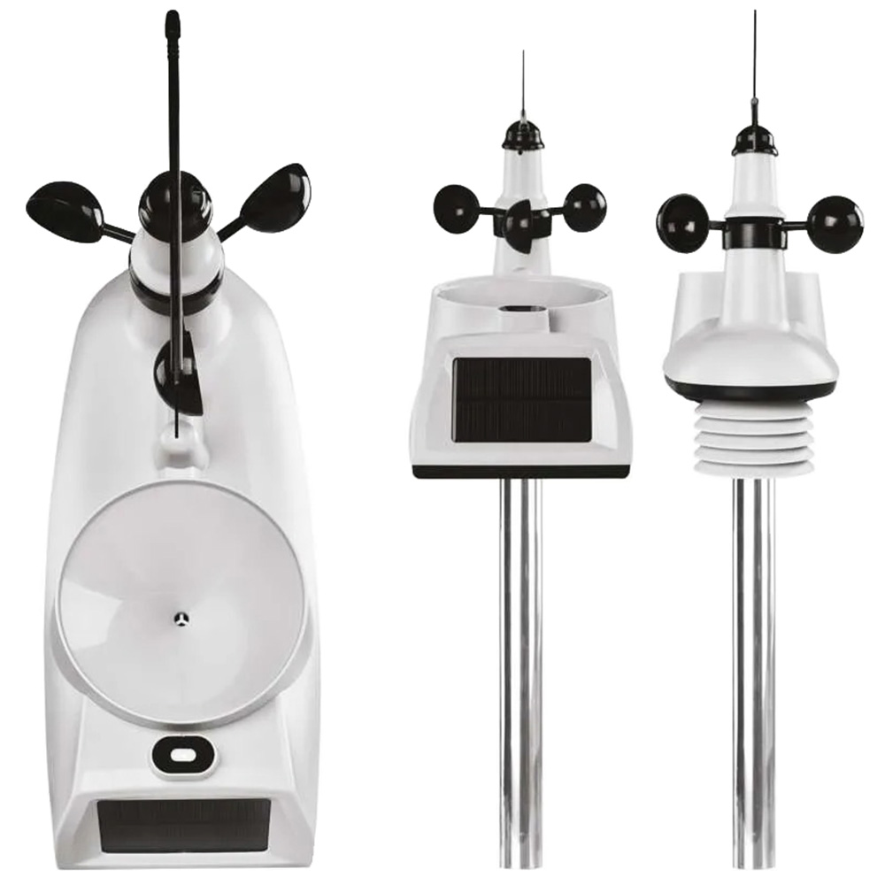 Метеостанція складається з головного блоку та виносного мультидатчика із сонячною панеллю, яка забезпечує його часткове живлення при денному світлі, продовжуючи термін служби акумулятора. Датчик вимірює зовнішню температуру та вологість повітря, кількість опадів, швидкість і напрямок вітру, а також інтенсивність ультрафіолетового випромінювання. Вбудований барометр визначає атмосферний тиск, на основі якого формується прогноз погоди, що відображається на дисплеї у вигляді зрозумілих графічних символів. Крім стандартних вимірювань температури та вологості у приміщенні, метеостанція оцінює мікроклімат і відображає внутрішній рівень комфорту у вигляді смайлика. Для розширеного аналізу прилад обчислює додаткові показники: точку роси, відчутну температуру, коефіцієнт охолодження вітром, індекс спеки. Такі параметри дозволяють точніше оцінити стан погоди й комфорт перебування на відкритому повітрі. Прилад також показує фазу Місяця, час сходу та заходу Сонця, допомагаючи краще орієнтуватися в добових циклах природи.
