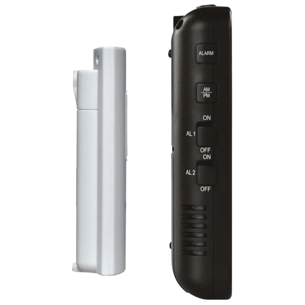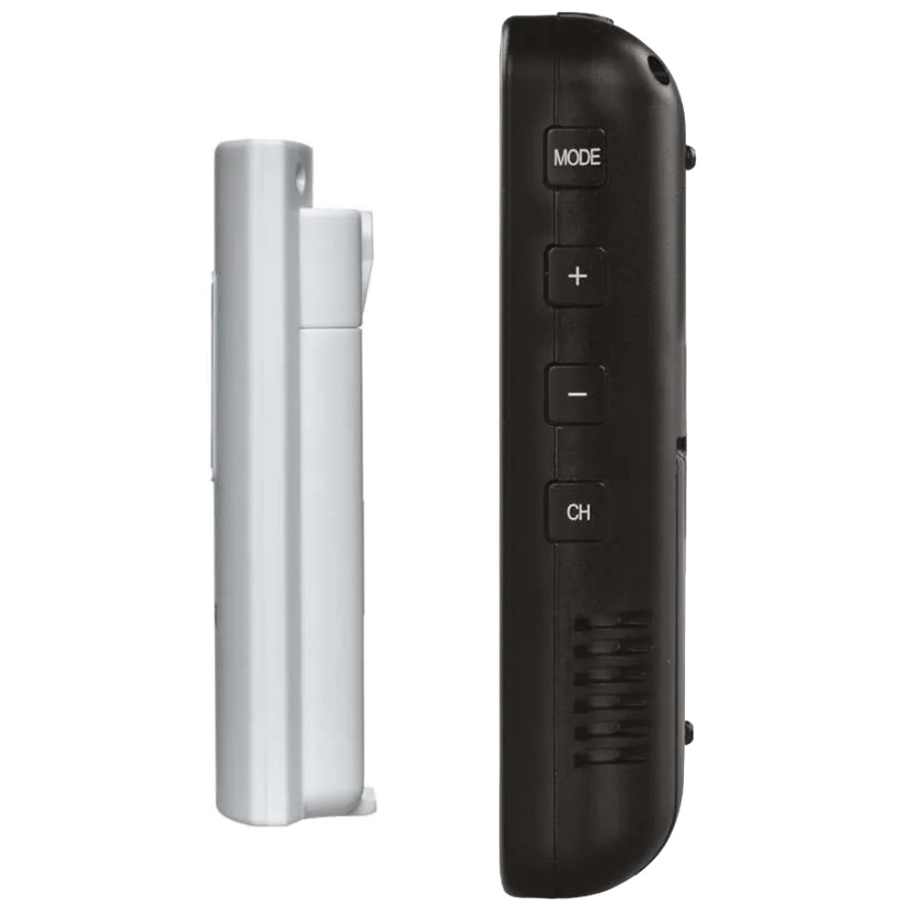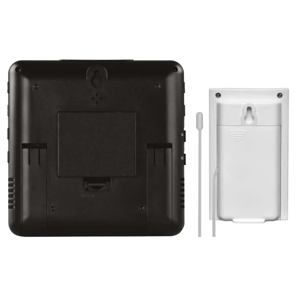 До комплекту постачання входить зовнішній датчик температури та вологості з дротовим сенсором, який можна розмістити на відстані до 30 метрів. За потреби до метеостанції підключається до трьох датчиків для контролю показників у кількох різних місцях, наприклад, у підвалі чи гаражі. Датчик живиться від двох батарейок АAA, а сама метеостанція – від трьох батарейок АА (елементи живлення не входять до комплекту постачання).