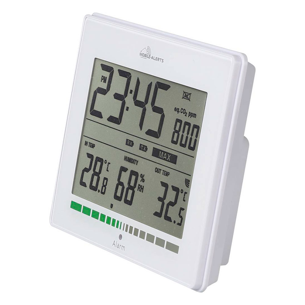 Головний блок метеостанції оснащений світловим індикатором, який повідомить про перевищення допустимого рівня CO2, оскільки підвищена концентрація вуглекислого газу негативно впливає на здоров'я та самопочуття людини.