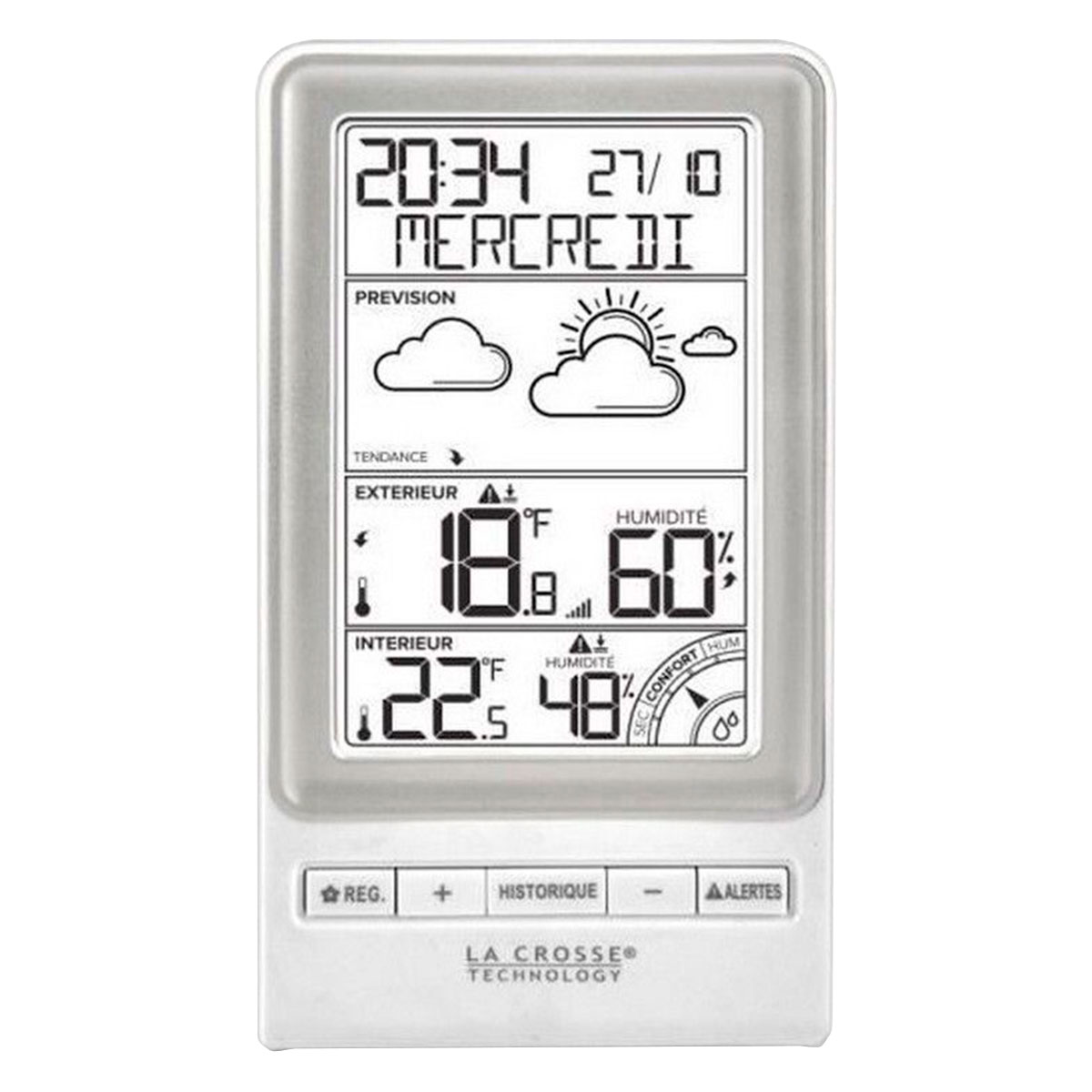 Метеостанція з виносним датчиком La Crosse WS6819 White/Silver дозволить слідкувати за зовнішньою/внутрішньою температурою та вологістю повітря, рівнем комфорту в приміщенні, а також за часом, датою та днями тижня. Усі дані відображаються на монохромному екрані оптимальних розмірів.