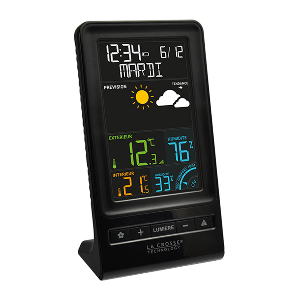 La Crosse WS6819C Black – це домашня метеостанція у стильному чорному корпусі з лаконічним кольоровим дисплеєм, на якому відображаються найважливіші погодні дані.